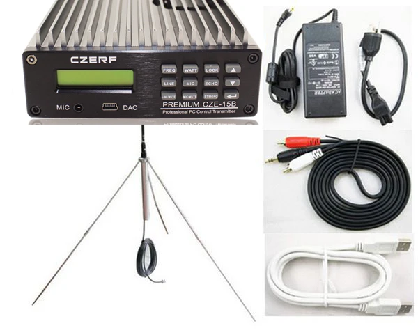 CZE-15B fm передатчик Профессиональный ПК управления fm радио и GP100 1/4 волна антенна с комплектом питания