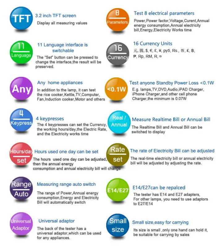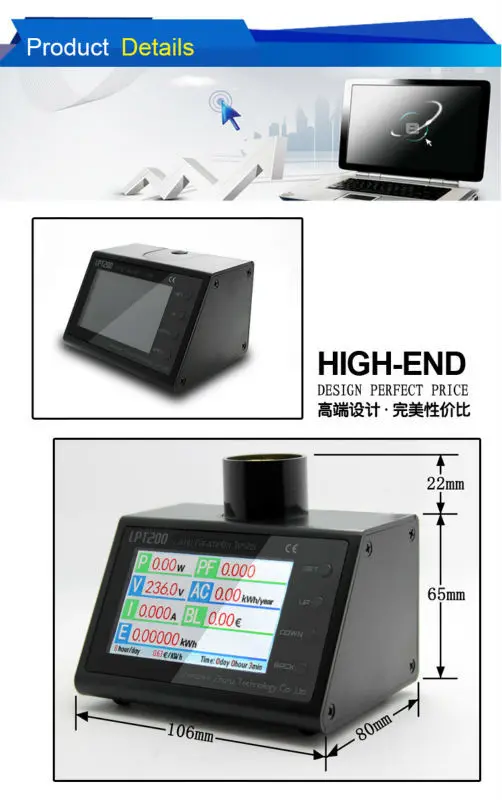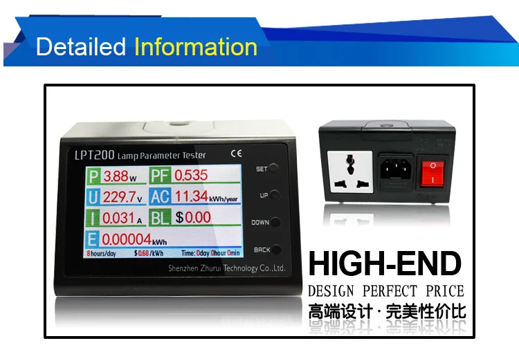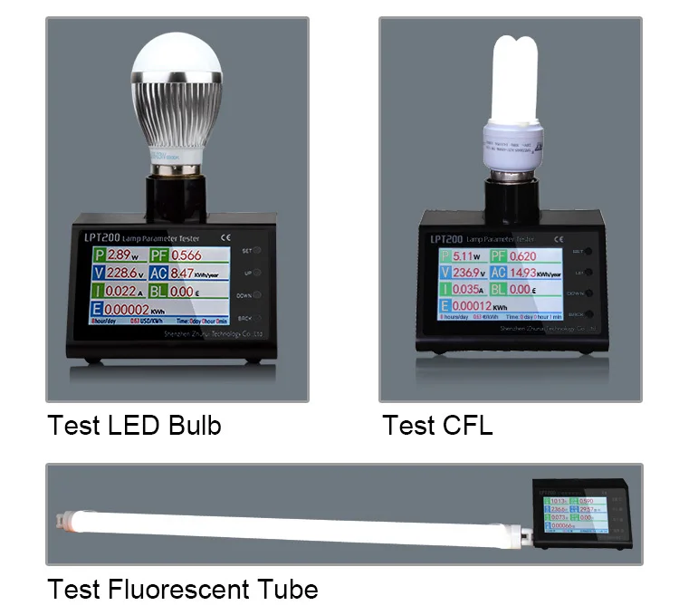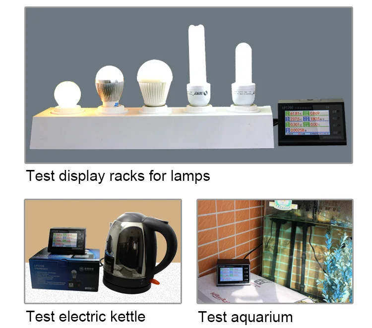 LPT200 светодиодный светильник параметры тестер используется 3,2 дюймов TFT ЖК-дисплей Цвет Дисплей, он может измерять Мощность, Мощность фактор, Напряжение, силу тока, годовой объем потребления энергии в режиме реального времени, потребление энергии, счета за электричество и накопившееся время ламп и других электрических аппаратов, операция проста и удобна.