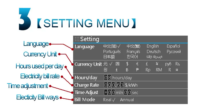 Ставка годовых счетов за электричество может быть установлена и отображена на экране;