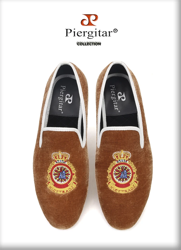Мужские бархатные туфли Piergitar ручной работы с вышивкой льва, му...