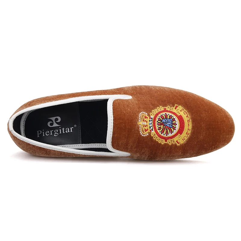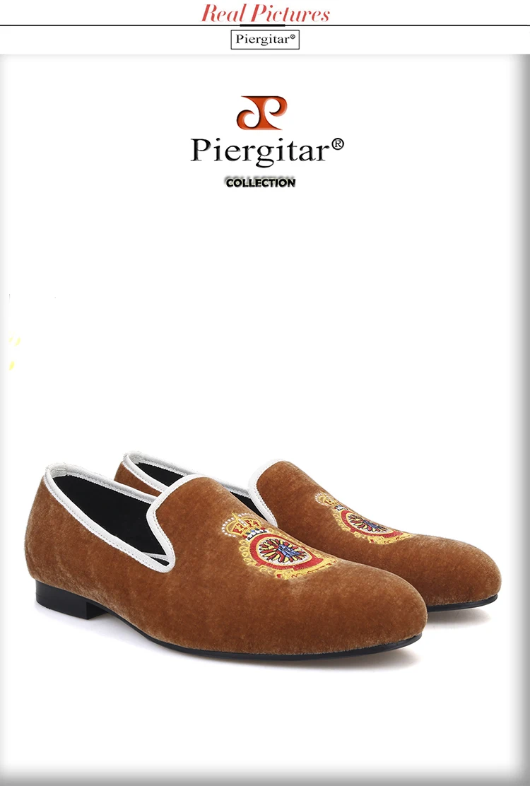 Мужские вельветовые туфли Piergitar, коричневые Лоферы ручной работы, с вышивкой короны индейки, на плоской подошве, размера плюс