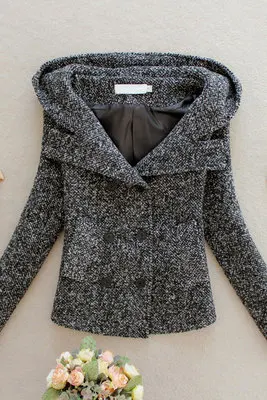 Куртка женская шерстяная, двубортная, приталенная, из твида, короткая, TP177, осень 2020