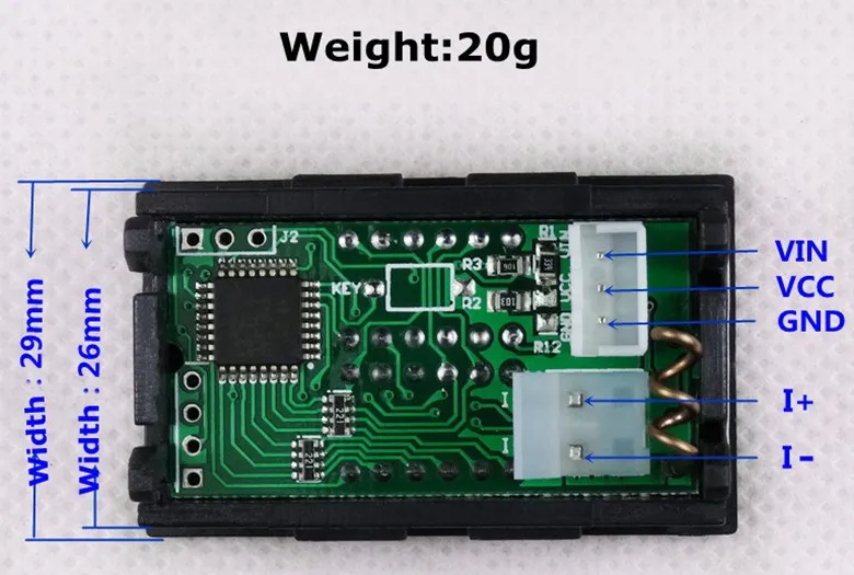 Вышеуказанное напряжение дисплея цифровой трубки; Есть три фиксированных точности дисплея. Четвертый бит-это бит знака, показывающий «U». Диапазон измерений составляет от 0,0-99,9 V; Минимальное разрешение 100mV
