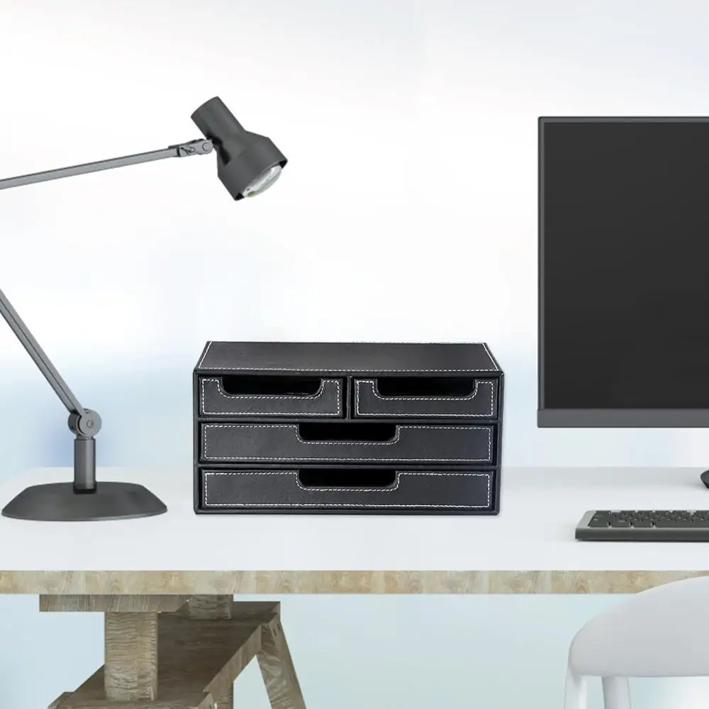3-х слойные 4 выдвижных ящика кожаные офисные канцелярские принадлежности ящик для хранения косметики ящик для хранения мода многофункциональный настольный органайзер для мелочей черный ящик
