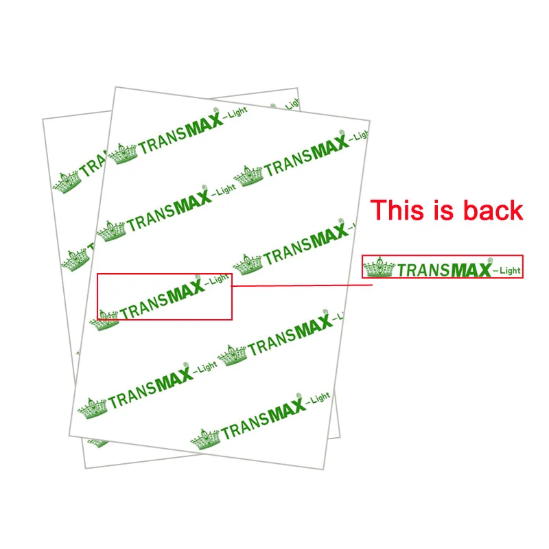 TRANSMAX светильник передачи тепла бумага, это трансферная бумага используется для белый или светильник-цветные футболки, подарочные пакеты, коврики для мыши, фотографии на одеяла и т. д. Передача легко отслаивается после того, как она остынет или нагревается.