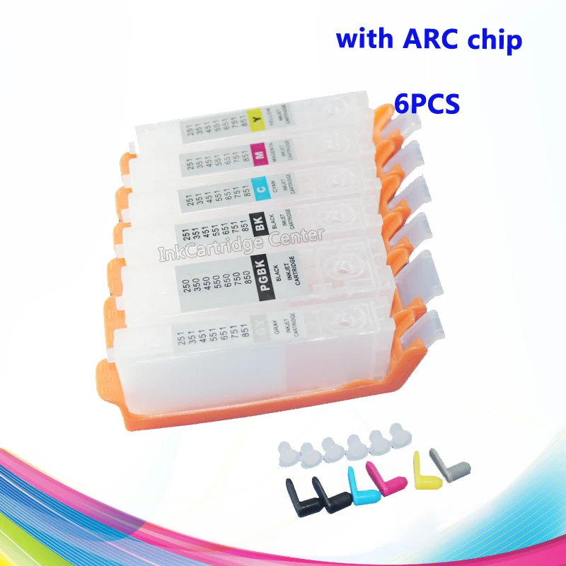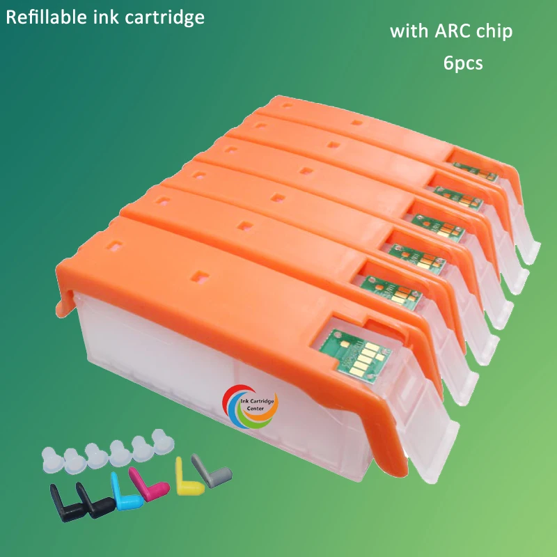 Пакет включает в себя:1 комплект (6 шт.) пустой многоразовый картридж с чипом arc