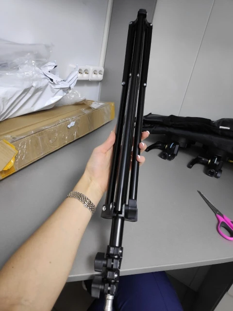 Этот штатив был заказан для работы со светодиодными лампами. Идеальные качества. Стоит на месте. Очень длинная доставка в Казахстан-более 30 дней. Хотя общение с продавцом было хорошим и приятным.