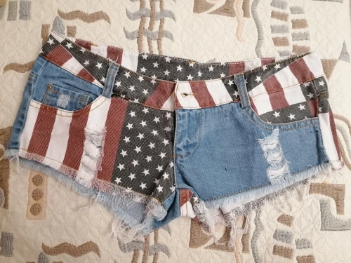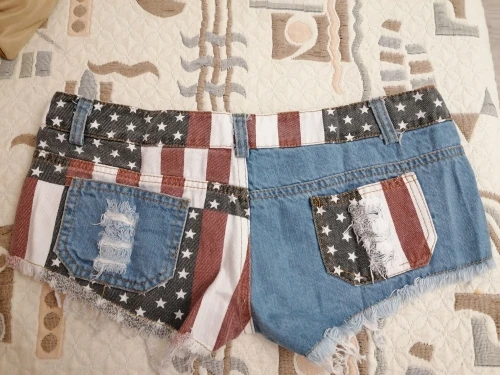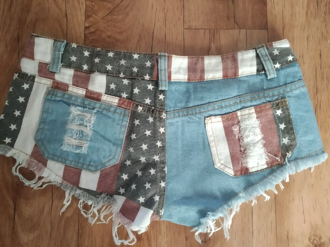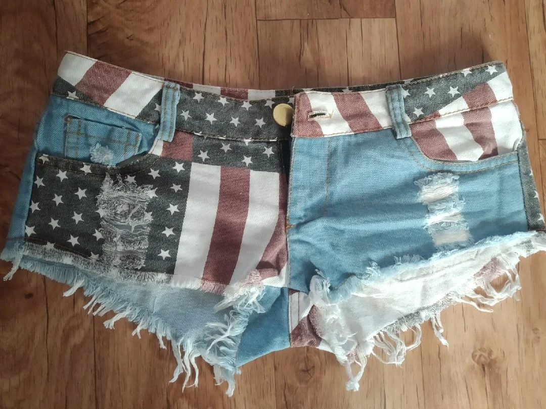 Женские джинсовые шорты, узкие шорты со средней посадкой, с принтом флага США, для танцев на Пилоне, короткие шорты с дырками, 2021, S-XXL