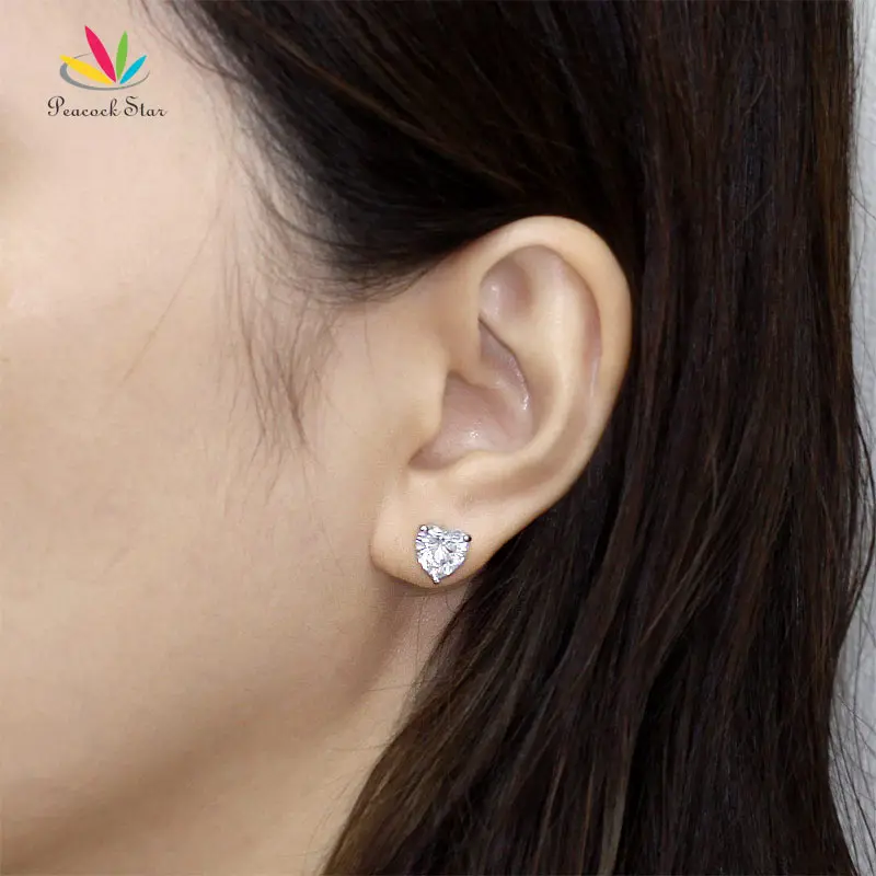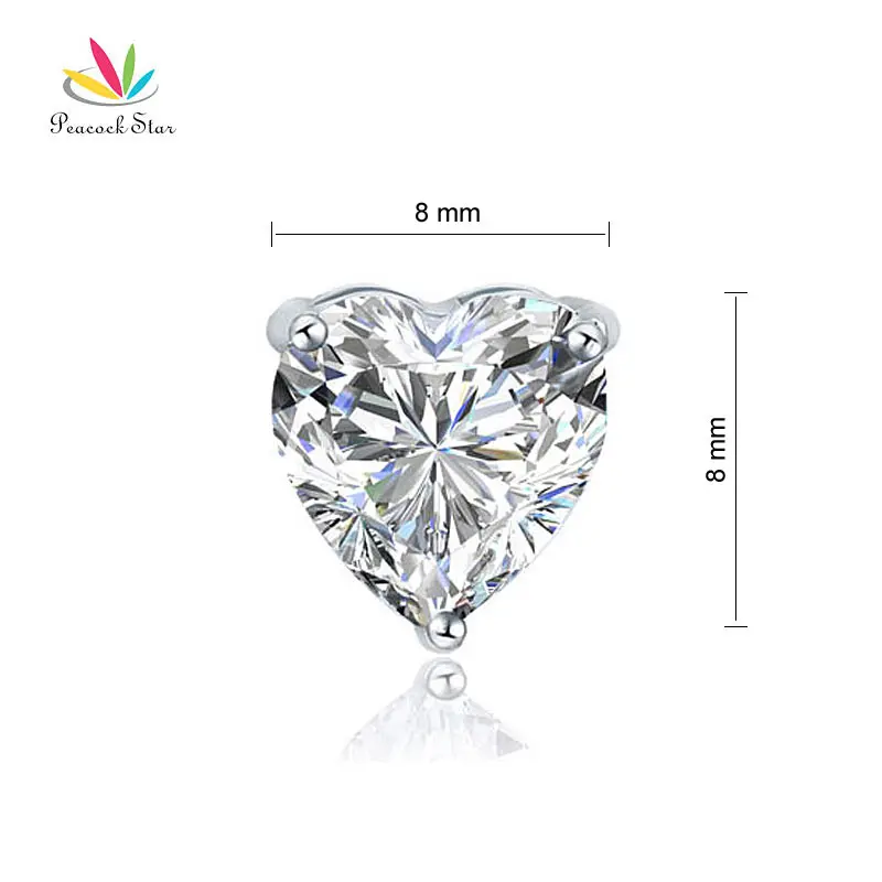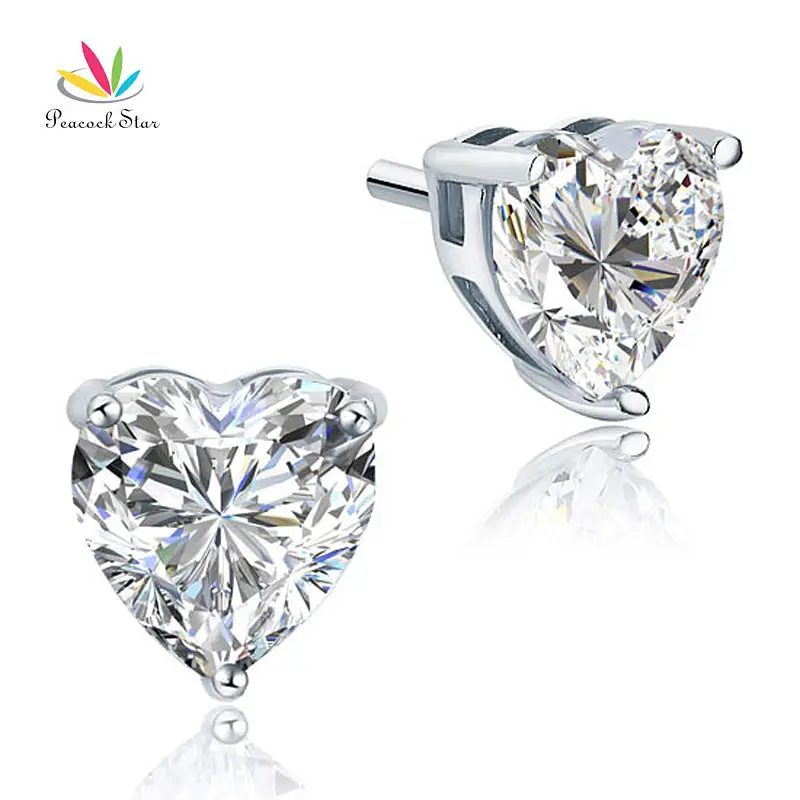 Павлин звезды Свадебные 4 карат сердце Стад Серьги для невесты 925 пробы Серебряные ювелирные изделия CFE8084