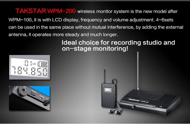 Беспроводная система монитора Takstar wpm-200 UHF, наушники-вкладыши, комплект с передатчиком и приемником, оптовая продажа