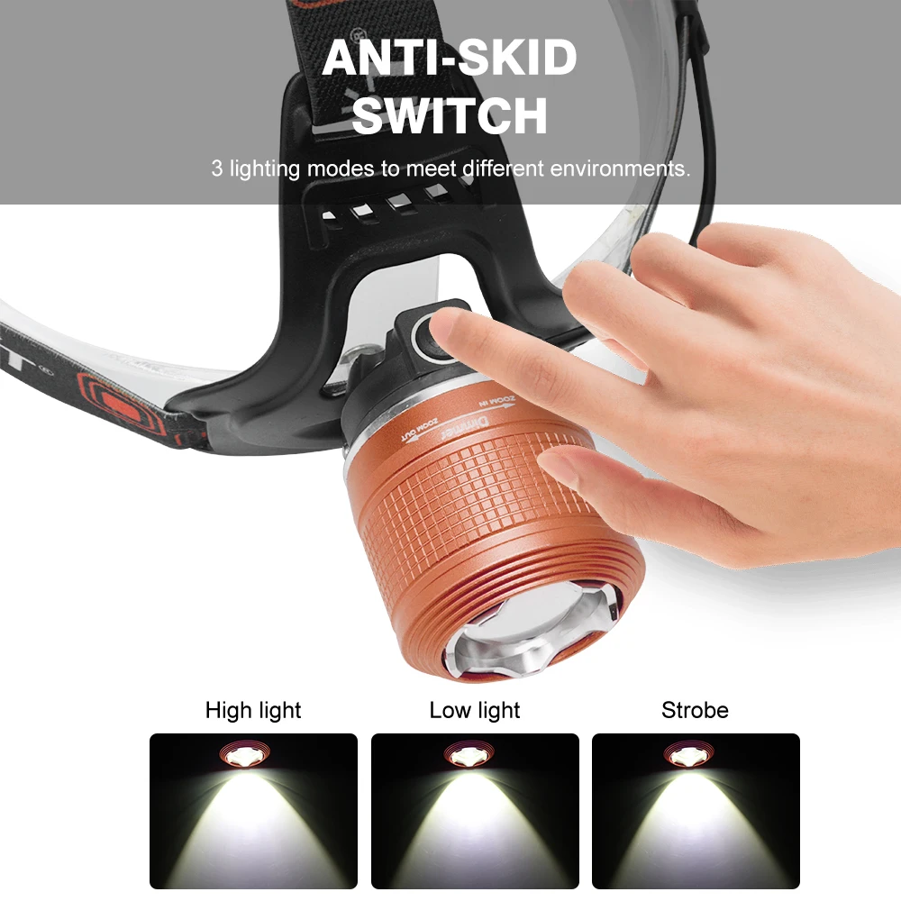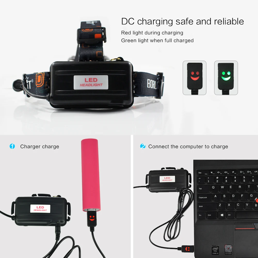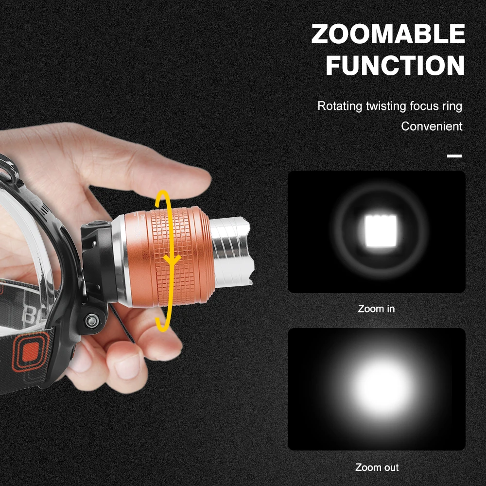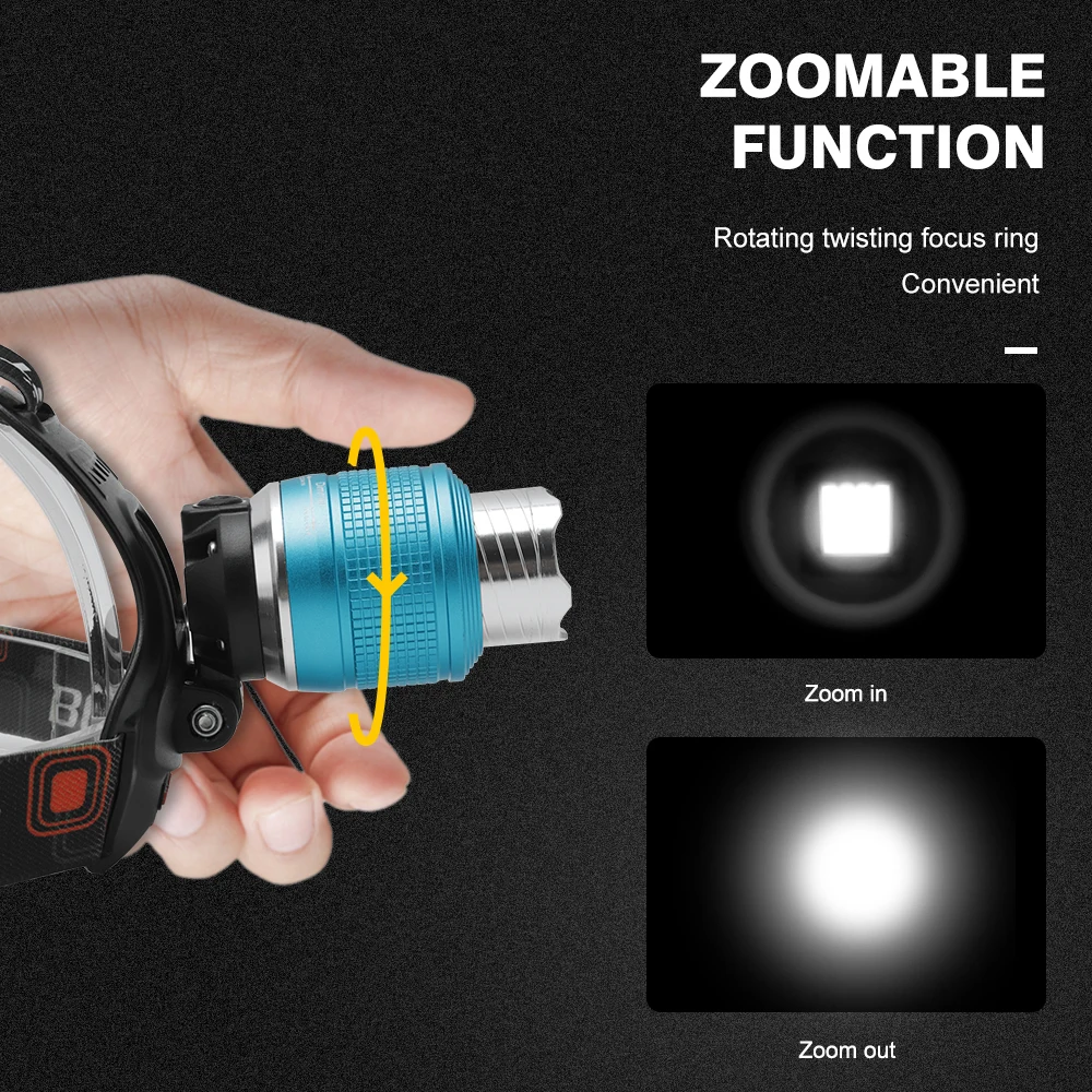 Налобный фонарь BORUIT RJ-2800 T6, светодиодный, 18650 люмен, 3 режима, с аккумулятором, водонепроницаемый, для походов и охоты