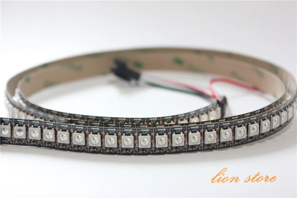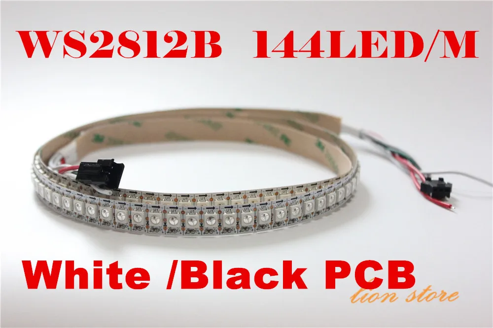 Светодиодная лента 144led sM WS2812B, освещение, белаячерная печатн...