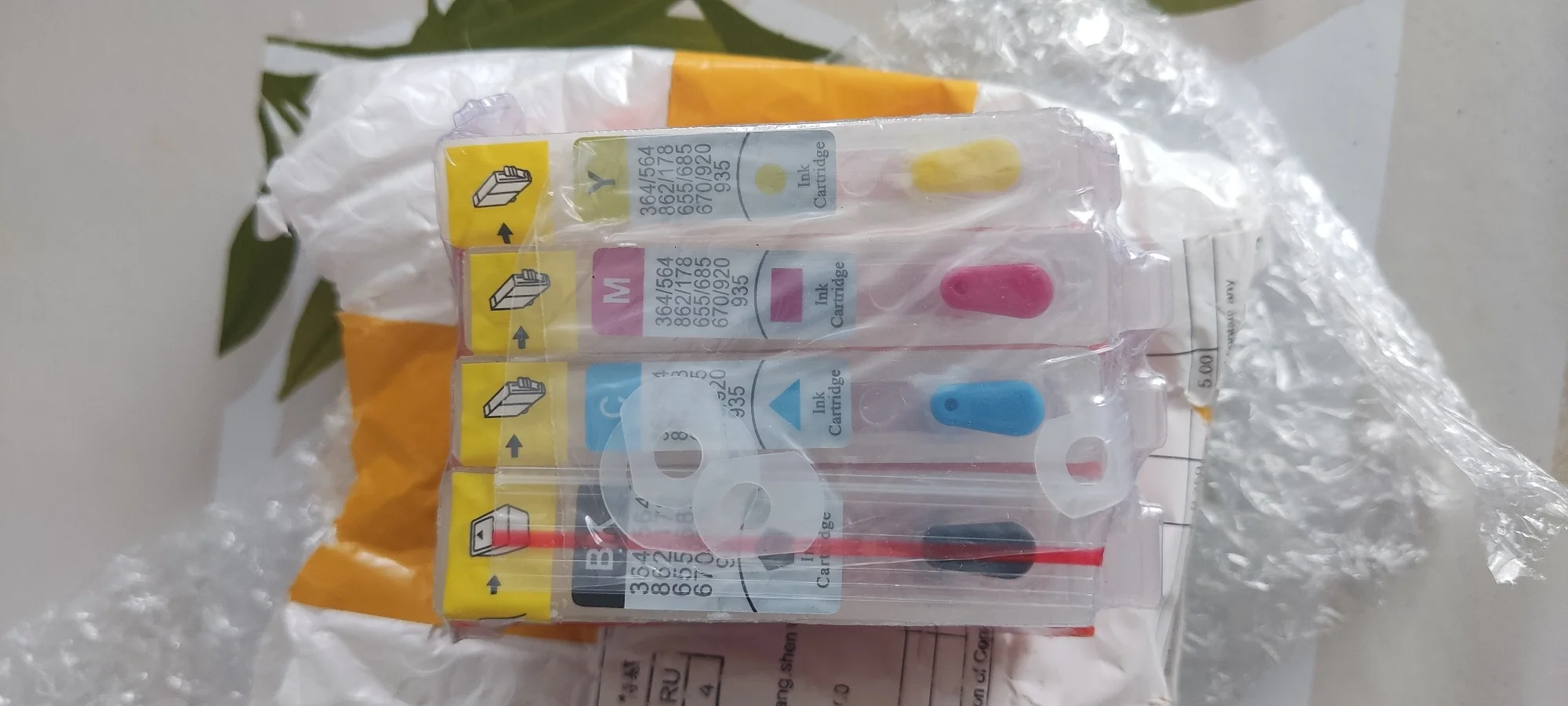 Посылка входит:1 набор (4 шт.) пустой картридж многоразового использования с чипами; 1 руководство по установке; 4 круговых герметичных резиновых прокладки для большей плотности между головкой принтера и чернильным картриджем.