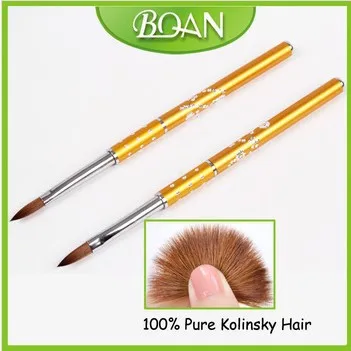 BQAN 10 шт. #4 золотистая металлическая акриловая кисть для ногтей 100% чистые Колонковые кисти натуральные волосы