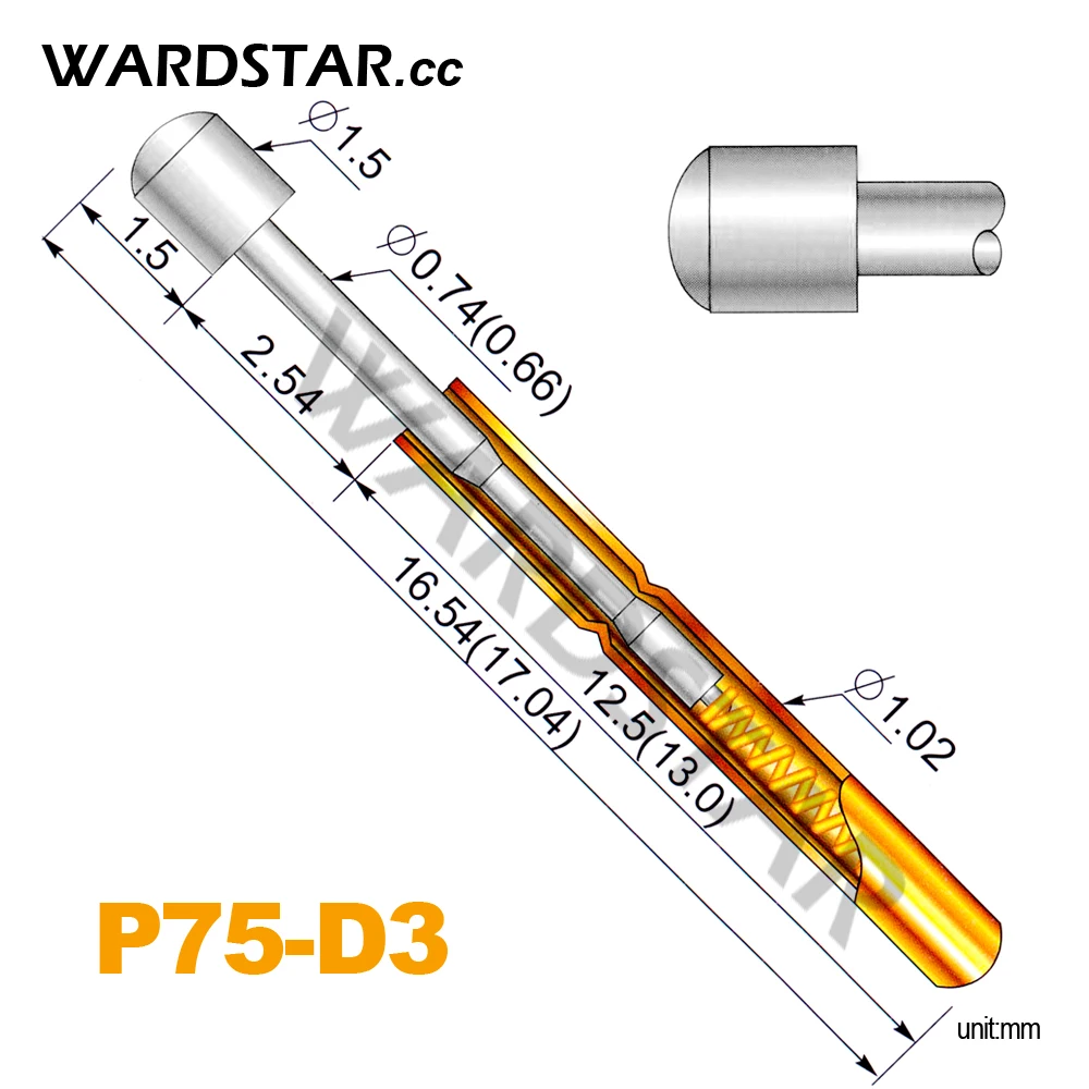 100 шт. P75-D3 Dia 1,5 мм весна Тесты зонды пружинный контакт Пружинные контакты SMT/SMD Длина 16,54 мм (ход Весна Froce:180g), оптовая продажа icon star icon star icon star icon star icon star
