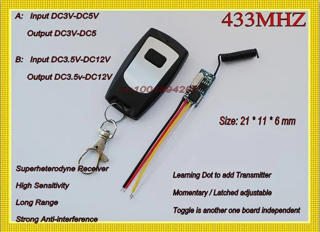 3,7 V 4,2 V 5V миниатюрный удаленный переключатель 433 MOS бесконта...