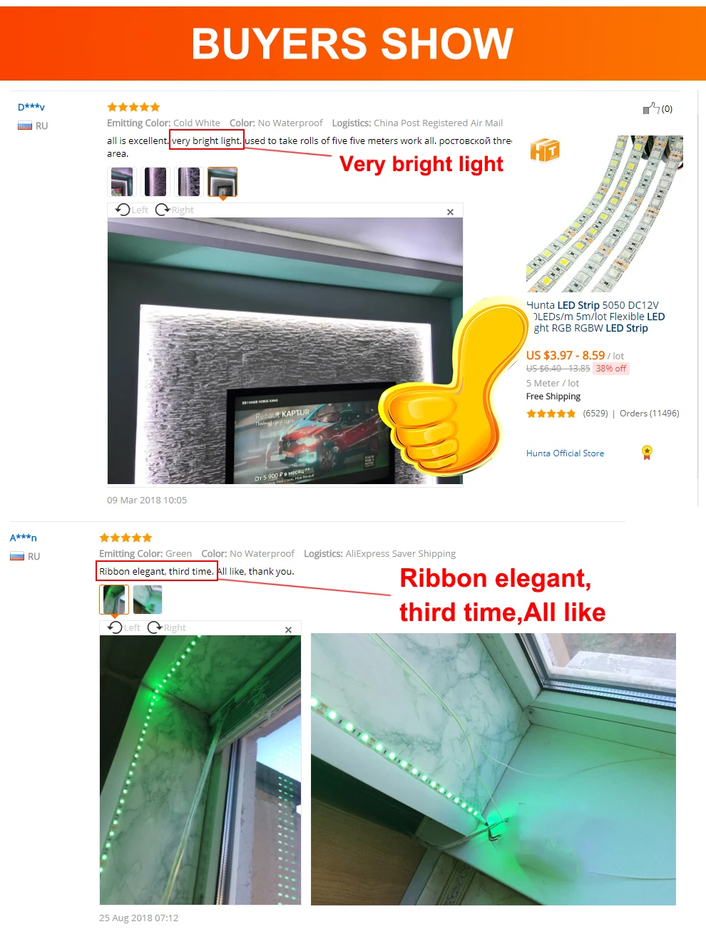 Лента пришла за две недели в Белгородскую обл, РФ. Первое впечатление хорошее. Брали две шт. 5050 нейтрально белого света. Будем устанавливать на подсветку рабочей зоны в кухне и подсветку потолка. Проверили - работает. Светит неплохо. Если что - дополню отзыв. Продавцу спасибо.