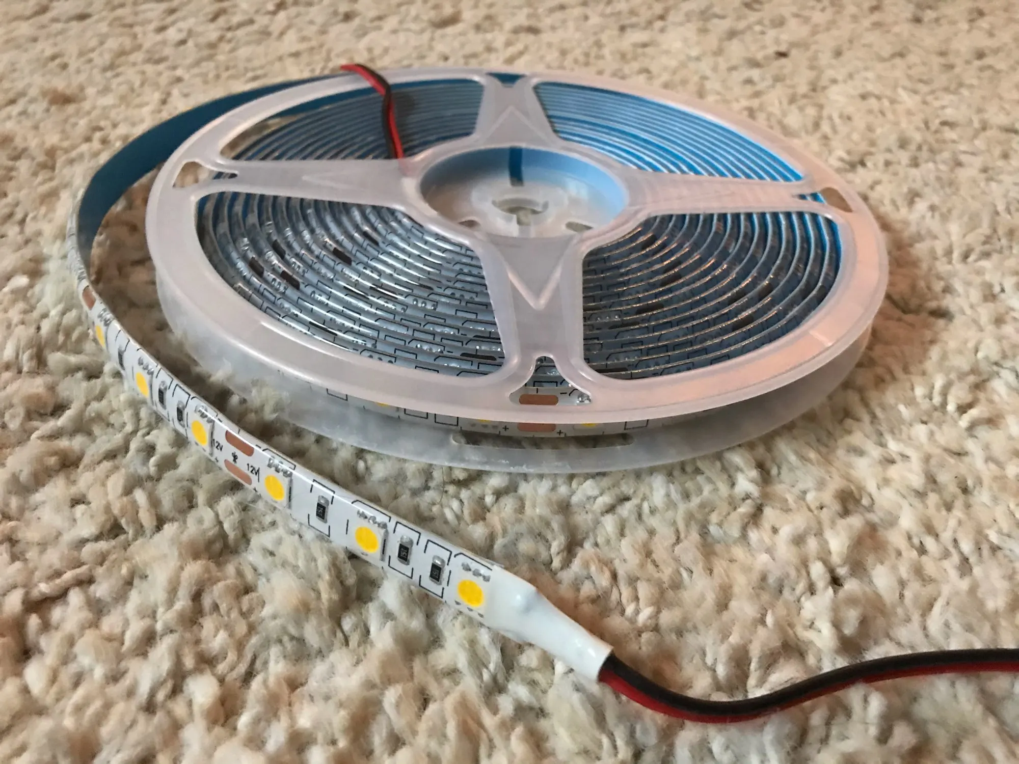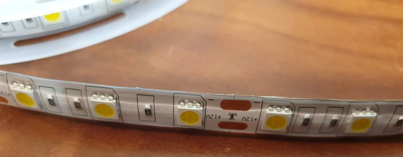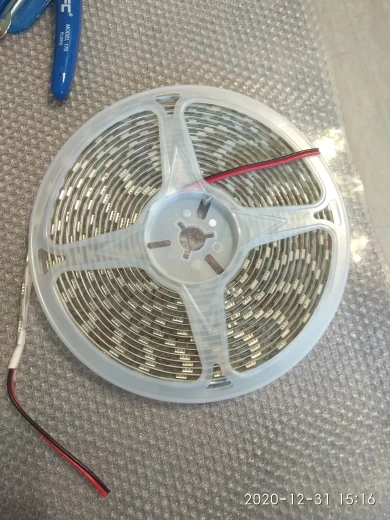 Лента пришла быстро. При питании ровно 12 В лента потребляет ток 2.3 А. Саид собой со временем греется, поэтому рекомендуется клеить на массивную теплопроводящую поверхность. Я приклеил на кухне под шкафчики. Получилось очень аккуратно даже с учётом того, что места спайки кусков лент не абсолютно ровные. Выбрал белый цвет, но он оказался слишком синим. Учтите это при заказе. Покрытие из силикона хорошее. Но говорят, что со временем желтеет. Проверим. Сделал фото крупным планом одно из сегментов. Может кому-то пригодится.