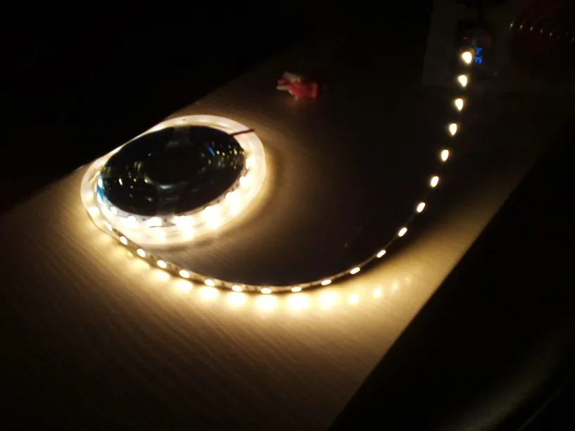 Брал теплую белую ленту без защиты (такая обычно "живет" дольше). Неплохая, яркая, свет приятный. Мне кажется, что слегка "зеленит". Ощутимо греется, клеить на теплоотвод или использовать на неполную мощность.