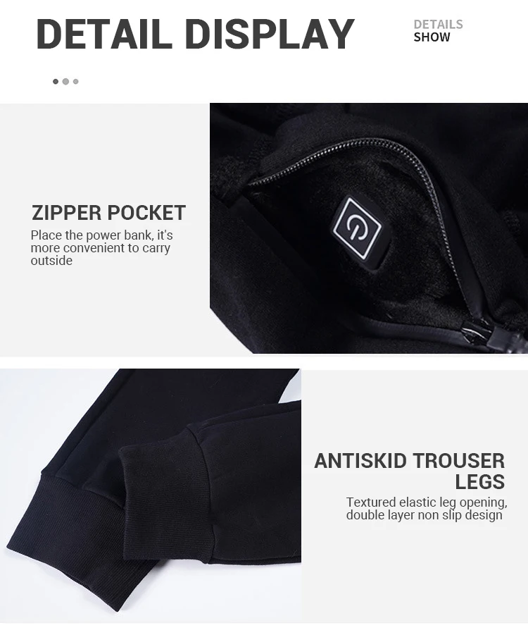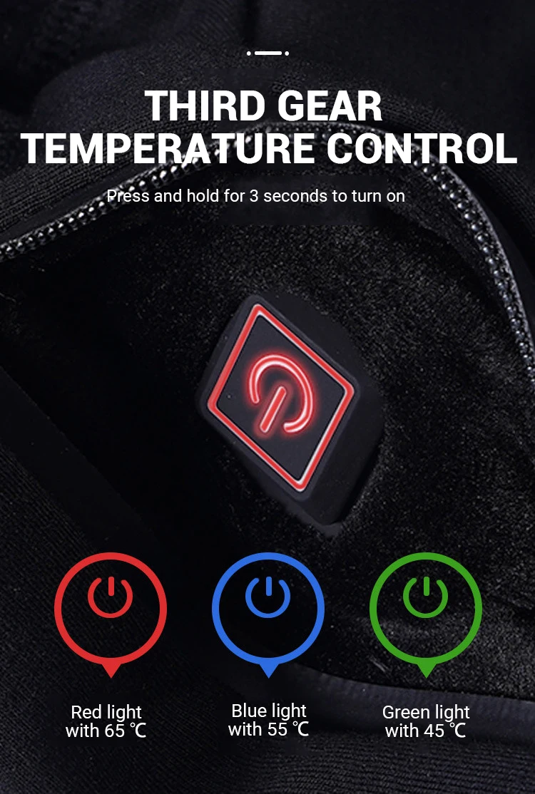 Особенности:Изготовлен из инфракрасного слоя нагревательного элемента из углеродного волокна и мягких приятных для кожи материалов для обеспечения теплого и удобного прикосновения.Интеллектуальный контроль температуры, подогрев коленей, спины и талии.Питание от любого портативного зарядного устройства USB 5 В/2 А, usb-разъем совместим с большинством портативных зарядных устройств на рынке.Который может начать нагрев в течение 30 секунд, длительный срок и долгое время нагрева. 3-уровневая Регулируемая температура с индикатором для регулировки требуемой температуры.Конструкция защитной изоляции, встроенный модуль тепловой защиты, напряжение безопасности 5 В, после перегрева, он перестанет работать до тех пор, пока тепло не вернется к стандартной температуре. Стиральная машина не влияет на внутреннюю систему отопления для безопасного и прочного нагрева одежды. Поддержка ручной/машинной очистки.Нагревательное нижнее белье помогает улучшить кровообращение, улучшить обмен веществ, что очень подходит для людей, которые боятся холода, болезни Рейно, артрита, плохого кровообращения и жестких суставов.Лучшее решение для различных видов активного отдыха, таких как катание на лыжах, рыбалка, бег, охота, езда на велосипеде, Пешие прогулки на мотоциклах, защита альпинистских собак, бег, удаление снега и т. д.