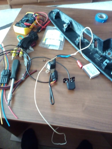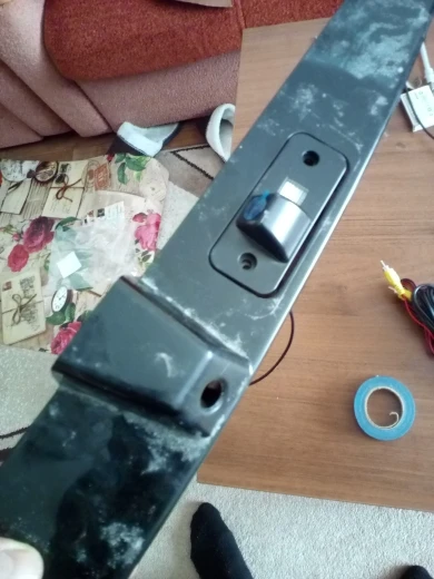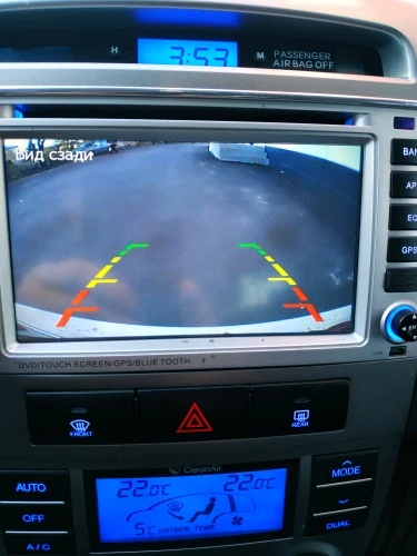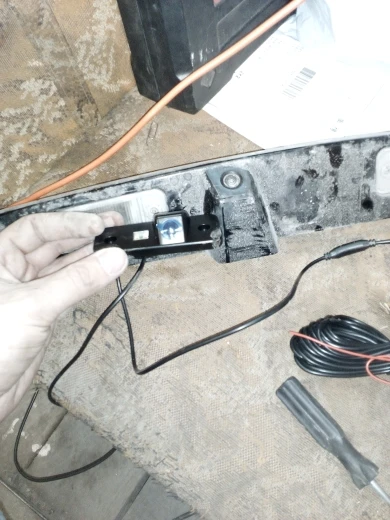Заказывал камеру на Santa Fe New (2008) , отлично встала вместо правой штатной лампы. Разбирал, хотел промазать герметиком, но внутри всё промазано хорошо. Замазывать вокруг диода не стал. Есть отдельные провода для подсветки светодиода -очень тонкие и короткие- не удобно подключать. Соединительные разъемы вывел в дверь багажника сделав разрез в резинке, через которую выходит подсветка номера, и замотал изолентой. Провод протягивал через резиновую гофру с помощью большой длинной стяжки, к концу которой привязал петлю провода изолентой, и дальше ловил стяжку над окошком багажного отделения. Далее по верху и вдоль передней стойки в ноги пассажира. Провода хватило. Подключал к фонарю заднего хода в багажнике, но можно было и к синему проводу в красной колодке в районе пассажира. Изображение камеры среднее (жаль что фото мутное получилось), специально положил газету на табурет, прочитать текст невозможно. Может разрешение дисплея плохое. Край бампера видно, вместе с патронником отлично.