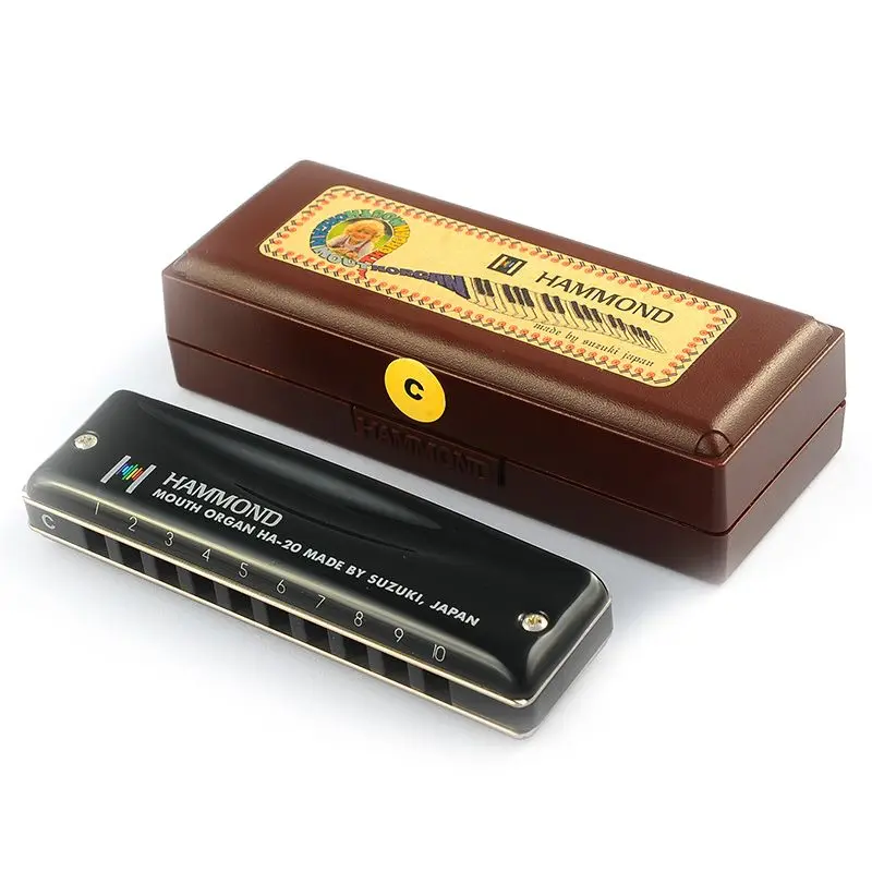 "Губная гармошка Suzuki HA-20 Promaster Hammond имеет легкую в использовании, свободную в использовании конструкцию с твердым анодированным алюминиевым гребнем и сфокусированными отверстиями для заметок. Компьютерная лазерная резка, гибкая, лазерная Настройка фосфорной бронзовой тростниковой системы дает насыщенные, четкие, мягкие тона.