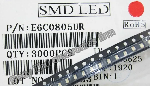 100 шт.лот 0805 патч светоизлучающая трубка, красный светодиод 2012