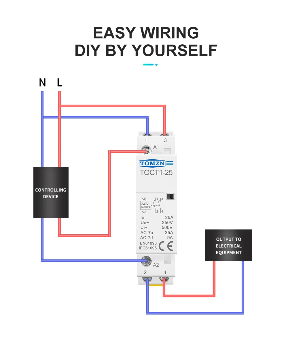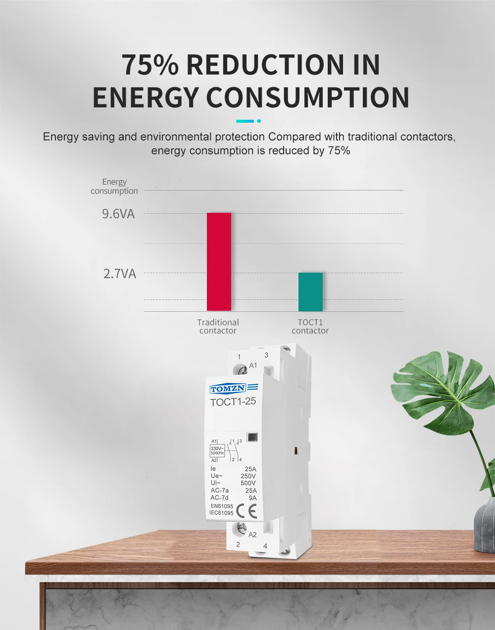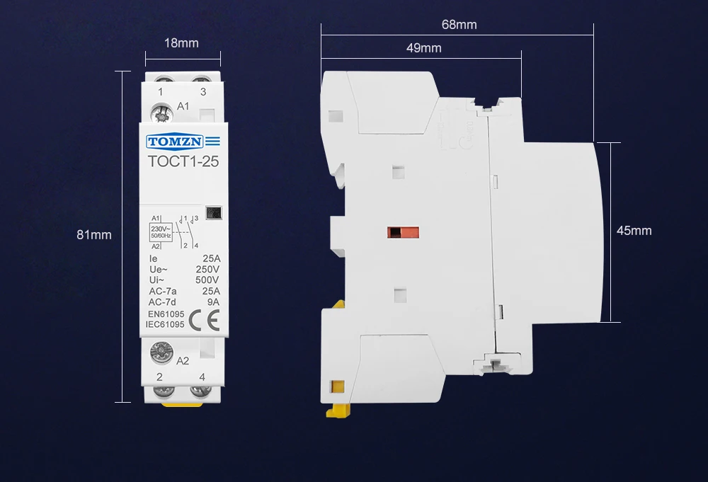 Модульный контактор TOCT1 2P, 25 А, 220 В230 В, Гц, Din-рейка