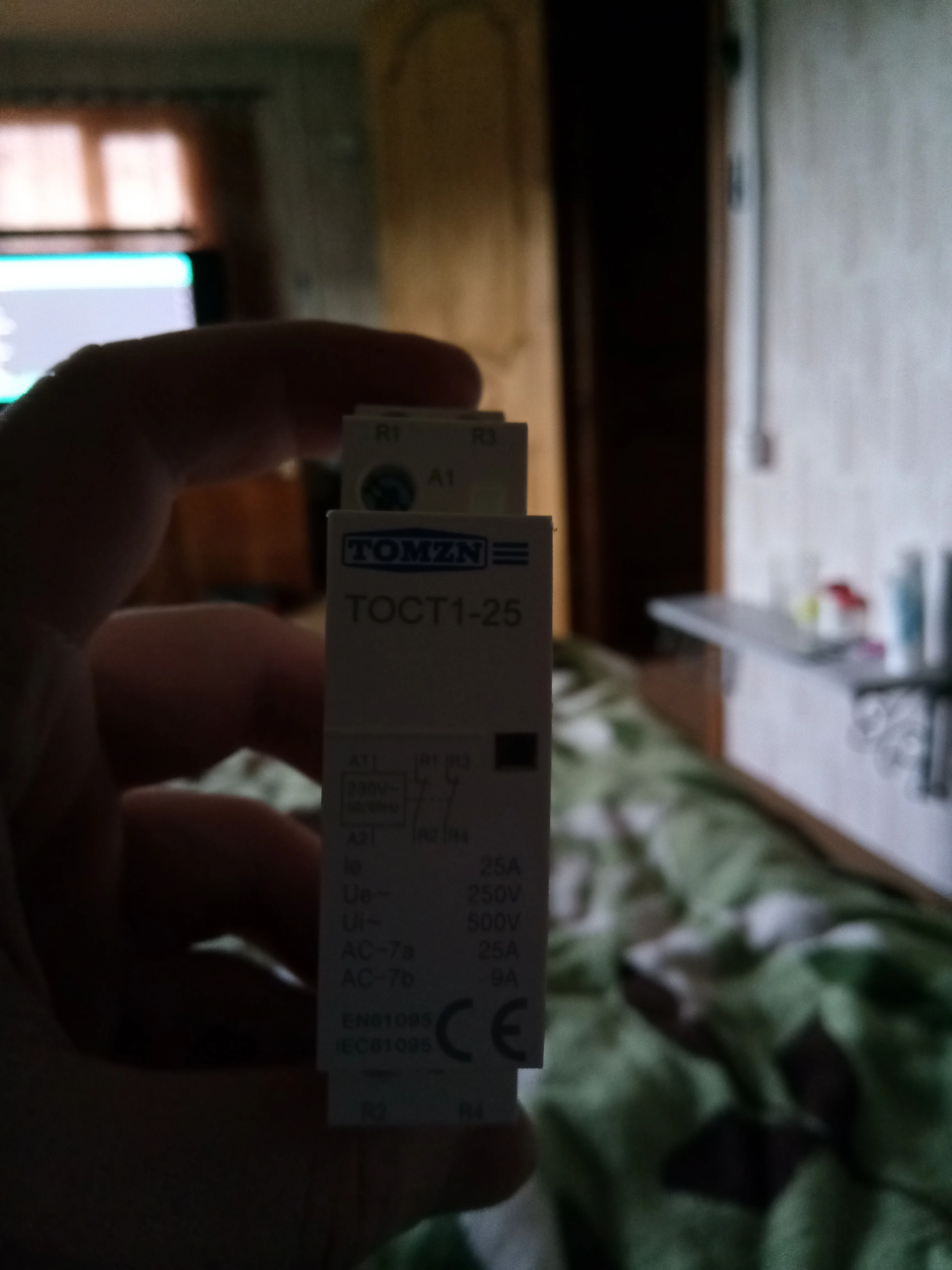 Контактор хорошего качества, все пришло в целости. Сопротивление обмотки 4 кОм, соответственно потребление обмотки около 55 мА. Купил сразу два: один на 20 А, второй на 25 А. Продавец - молодец, ответственный, Посылка до г.Чебоксары пришла за 10 дней.