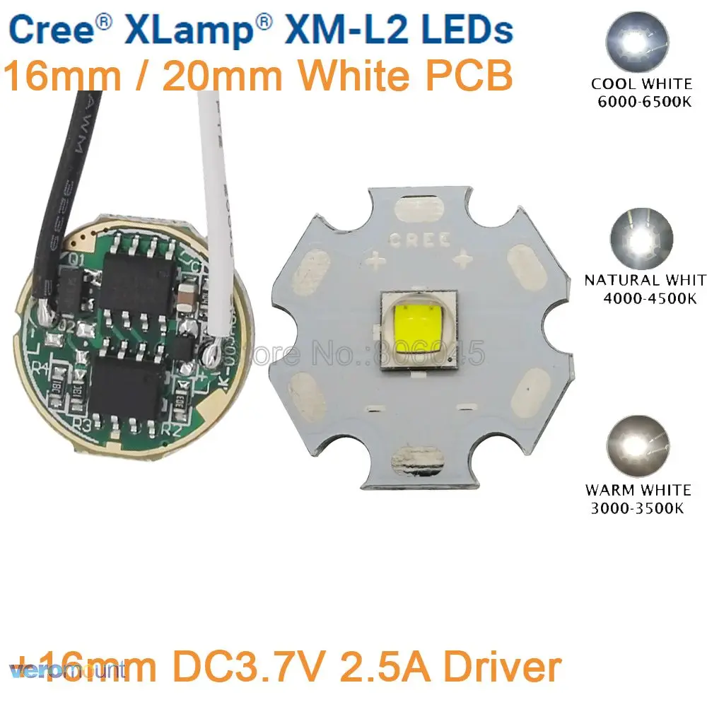 Cree XML2 XM-L2 T6 холодный белый теплый белый нейтральный белый 10 Вт светодиодный излучатель 20 мм черный или белый PCB с DC3.7V 2.5A 5 режимами