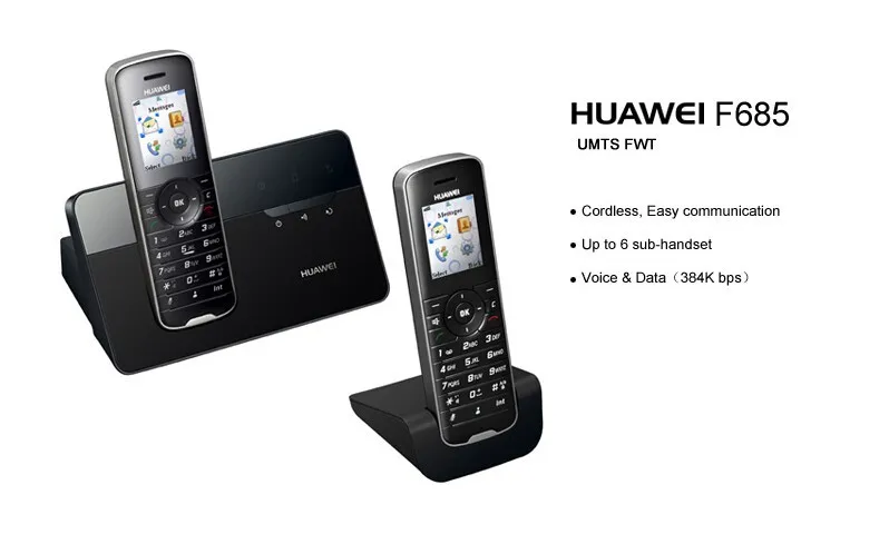 Huawei F685 выступает в качестве обычного стационарного телефона, но подключает звонки через 3G Вместо разъема для телефона. Идеально подходит для семьи и компании-может быть подключено до шести единиц, бесплатные звонки между ними и возможность подключения звонков.