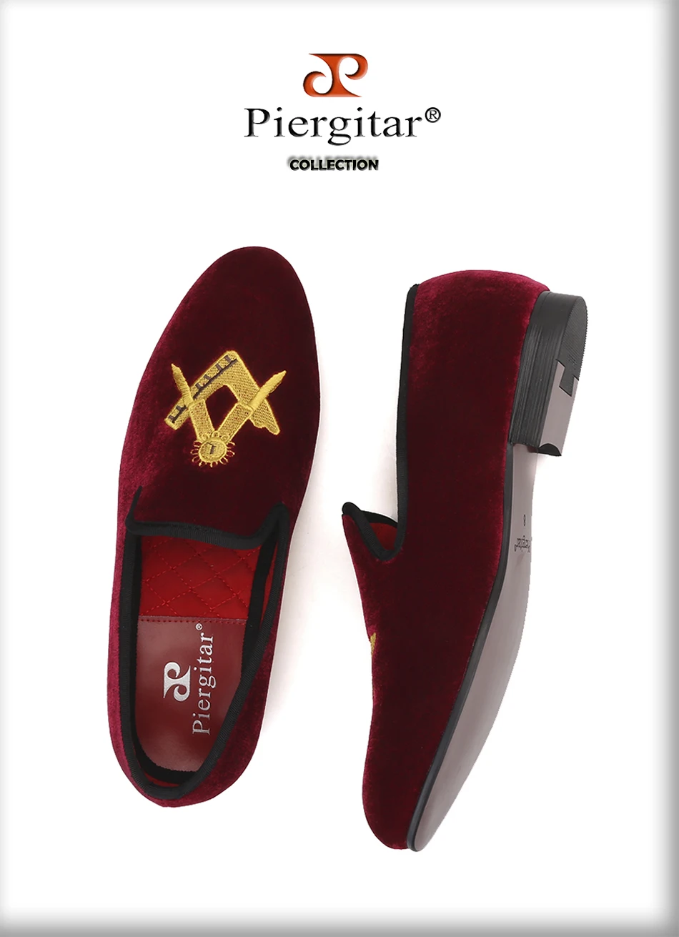 Мужские бархатные туфли Piergitar 2019 темно-красного цвета с банто...