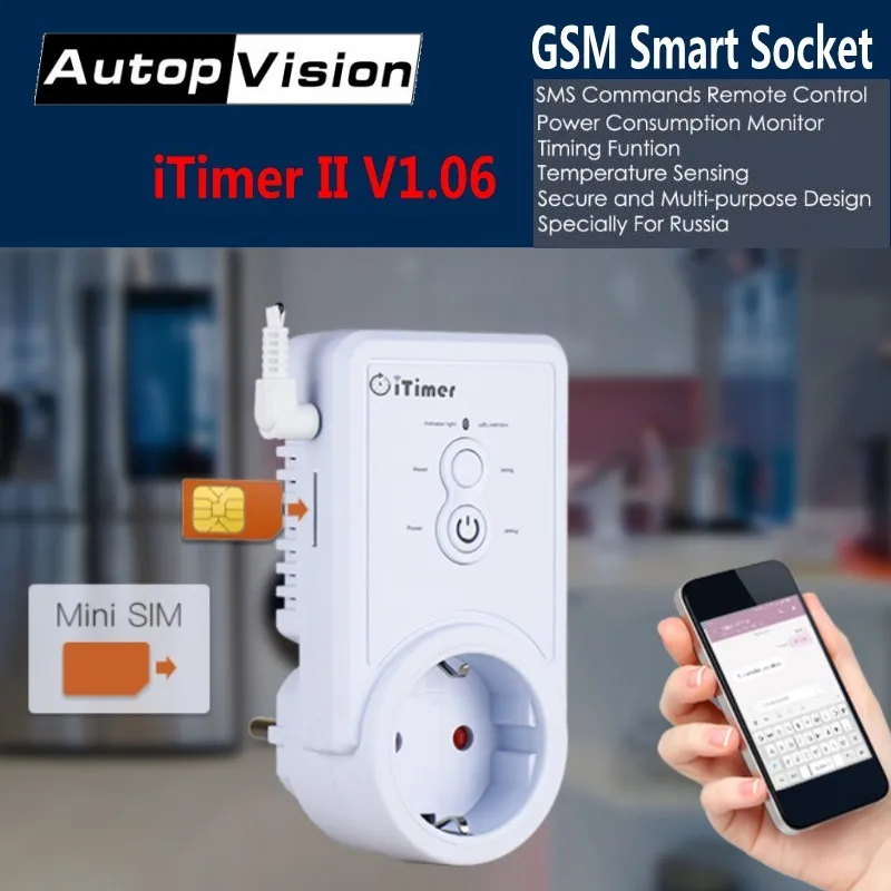 Умная розетка GSM с датчиком температуры, умный релейный выключатель с русской рассылкой, автоматизация дома