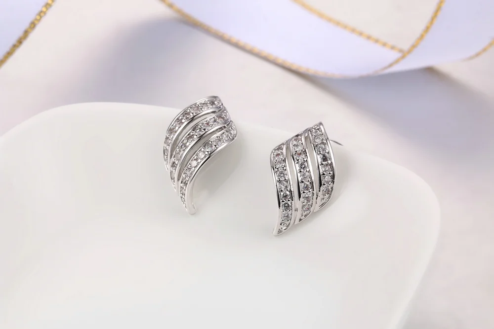Женские серьги-гвоздики с крыльями двойного яркого угла, цвет белоерозовое золото, лидер продаж, Прямая поставка, модные ювелирные украшения с перьями DFE037