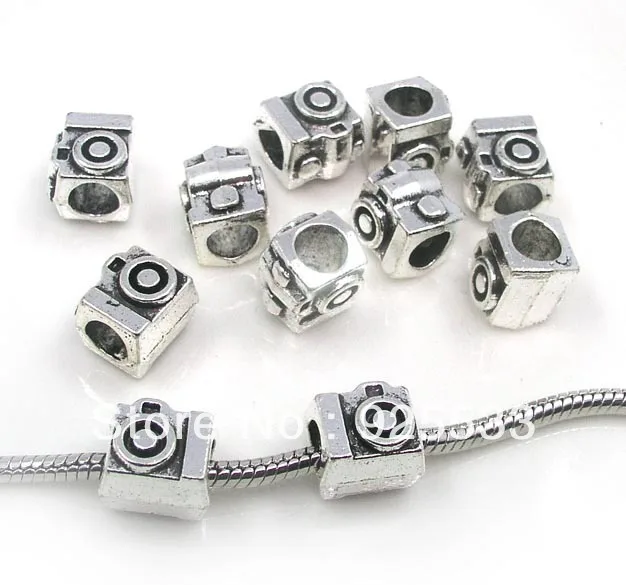 Бесплатная доставка, металлические бусины в форме камеры с большим отверстием 50 шт.лот, подходят для европейских браслетов, ювелирных изделий сделай сам