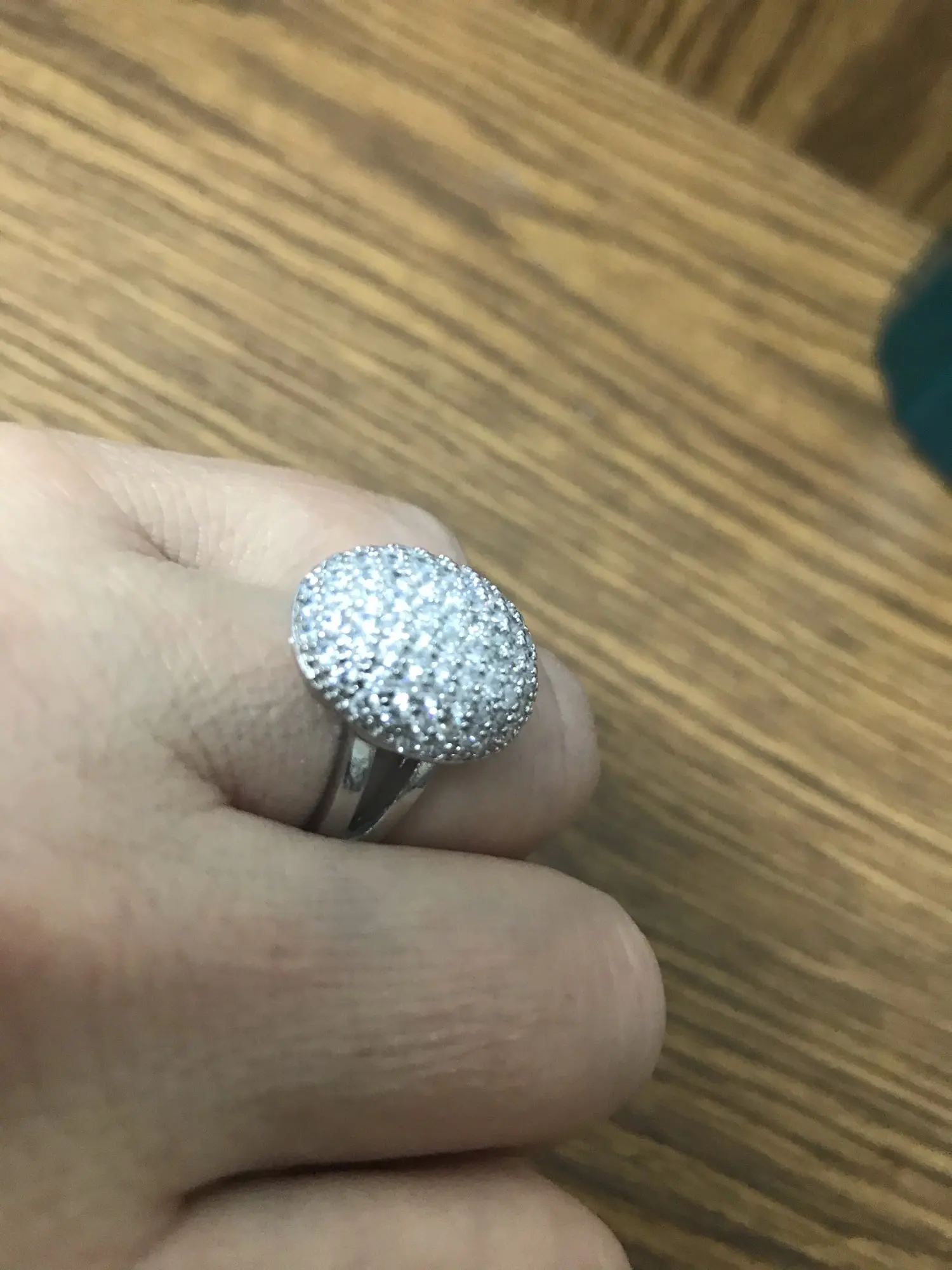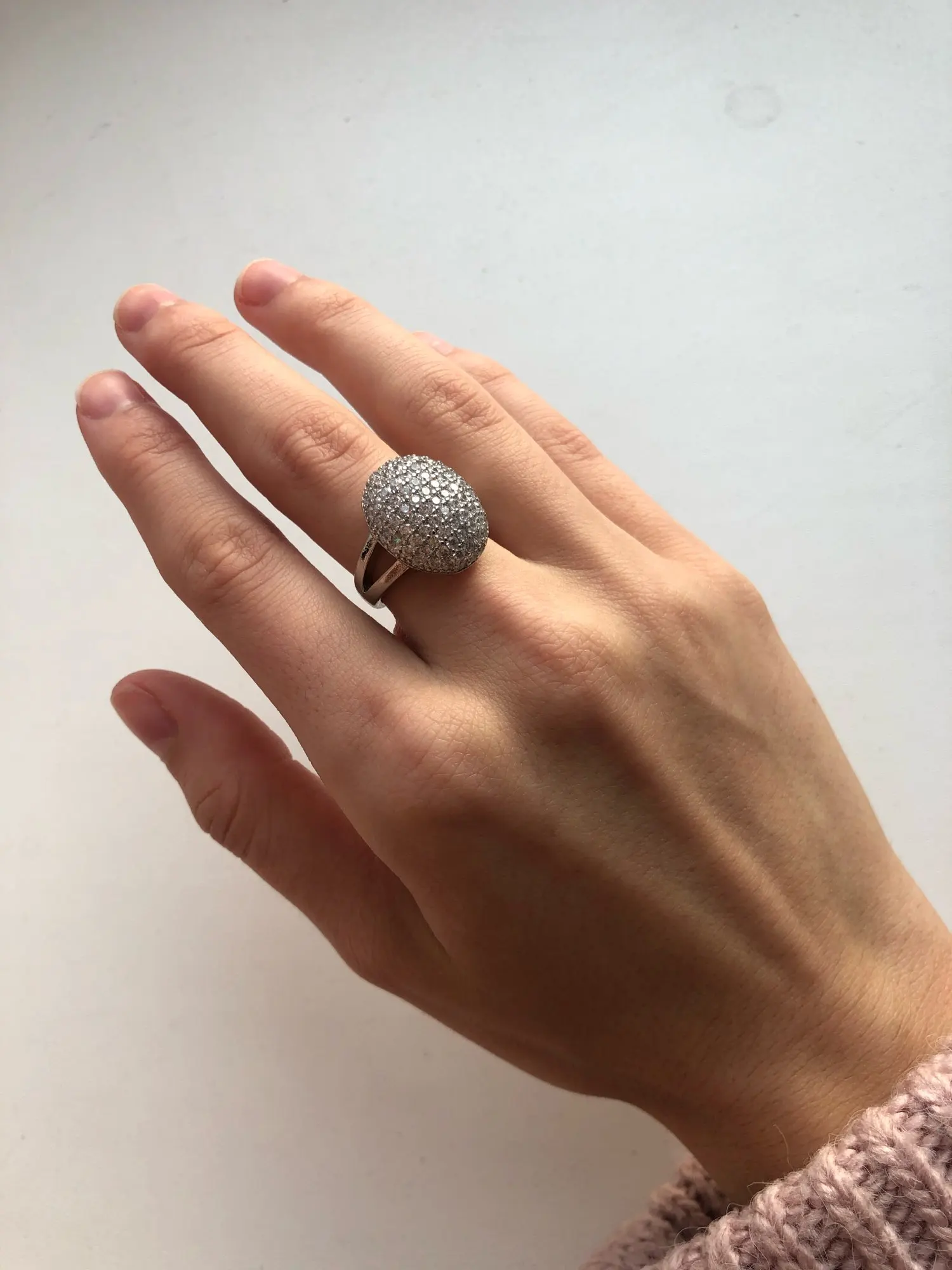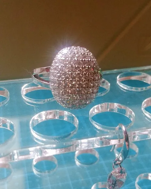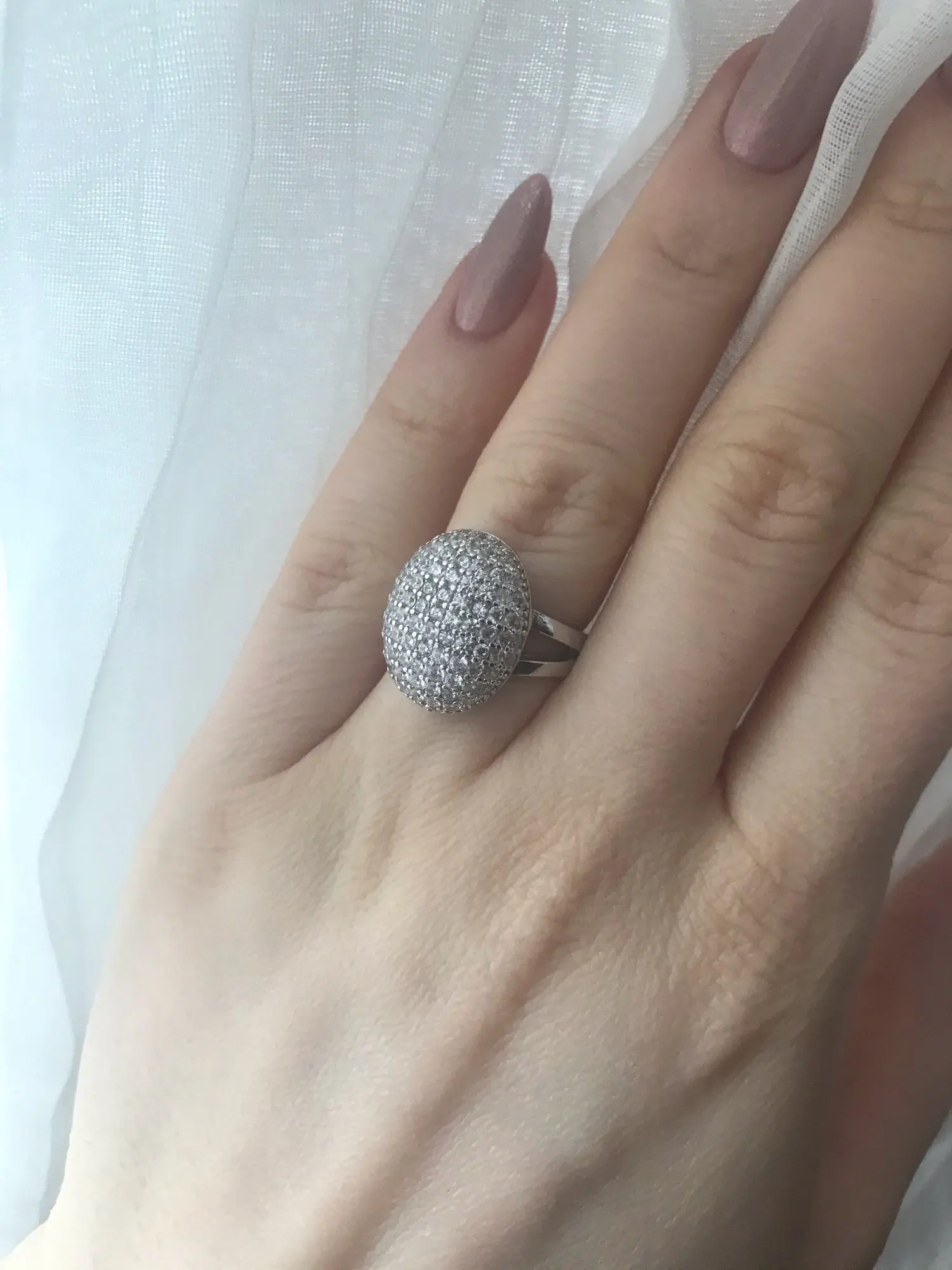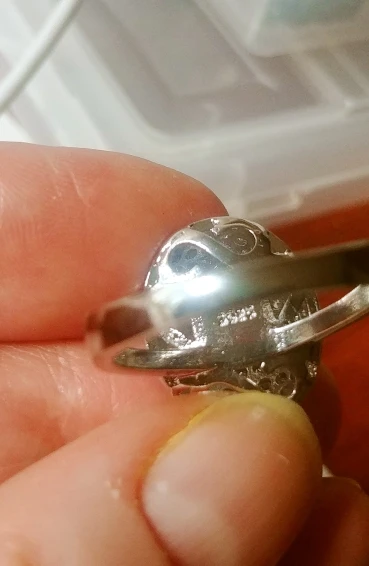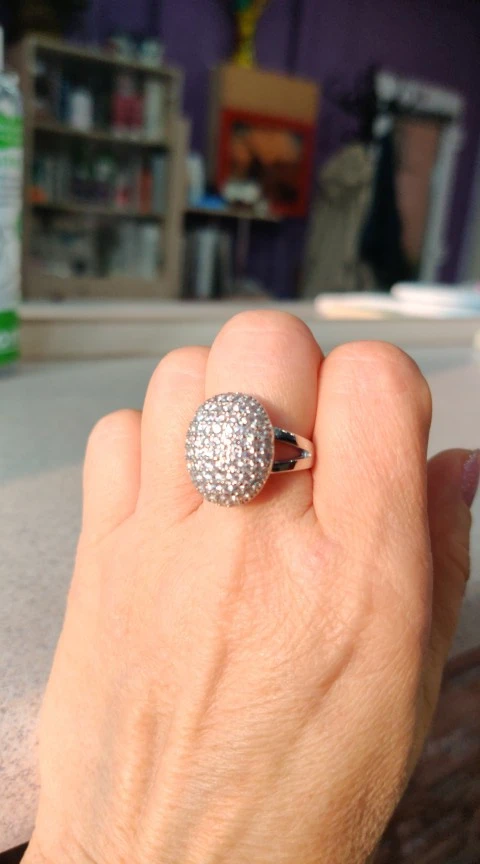 Заказ шёл месяц. Кольцо красивое, но крупновато, камешки красиво переливаются.
