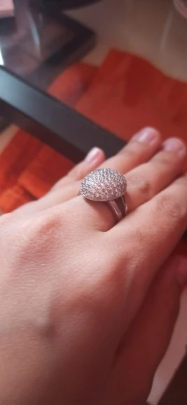 Anello davvero molto bello, assolutamente uguale alla foto mostrata. I piccoli zirconi brillano davvero molto e la misura che ho preso, che è 8, calza perfettamente al dito medio. Sono molto soddisfatta!! La spedizione è stata un pò lenta ma in tempo di pandemia è accettabile.