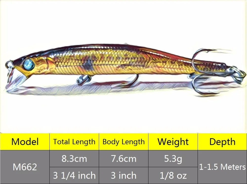Приманка рыболовная wLure M662, тонкая, 5,3 г, 8,3 см, с тройными крючками 2 #6, с эпоксидным покрытием