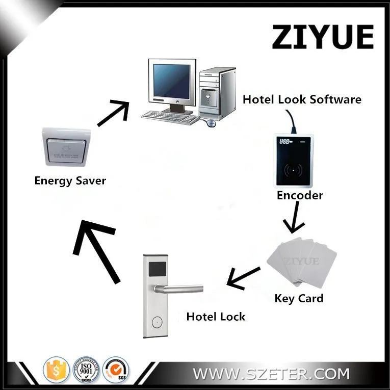 Электронная смарт-карта RFID, система дверного замка отеля, RFID бесплатное управление программным обеспечением (1 замок, 1 шт. кодировщик, 5 шт. карт, программное обеспечение)
