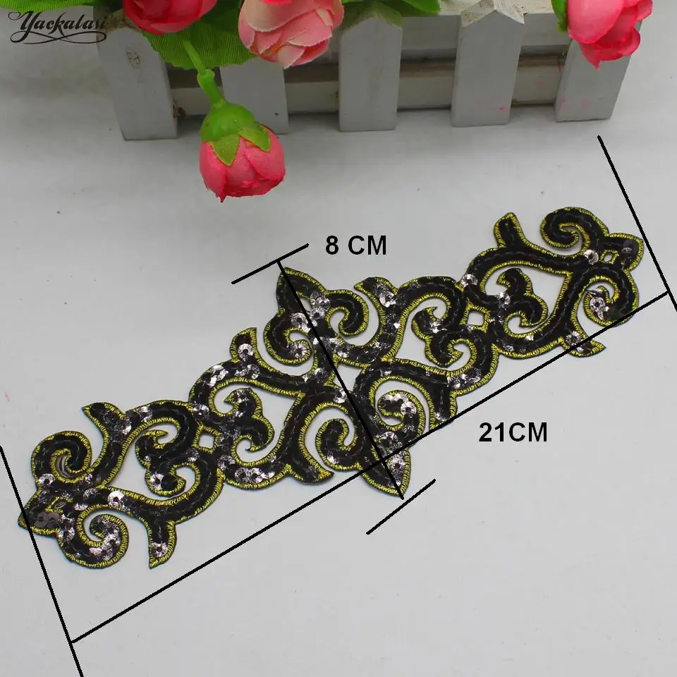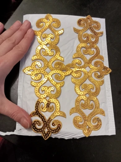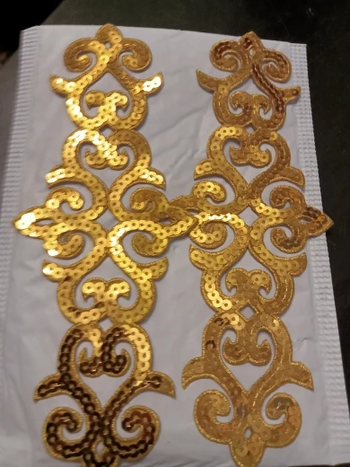 DescriptionSequined Appliqued Gold Patches Iron On Embroidery Fabric Patch