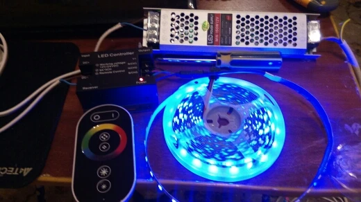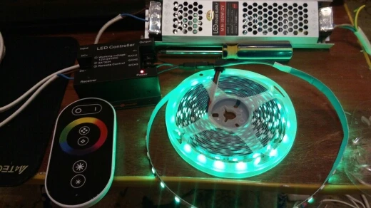 все работает. Думал, что одной линии будет достаточно для освещения стола, но нет. только 4 ряда светодиодной ленты нормально освещают. Брал холодный свет, но для освещения стола не понравился, отдает синевой. Лучше бы я взял тёплый свет.