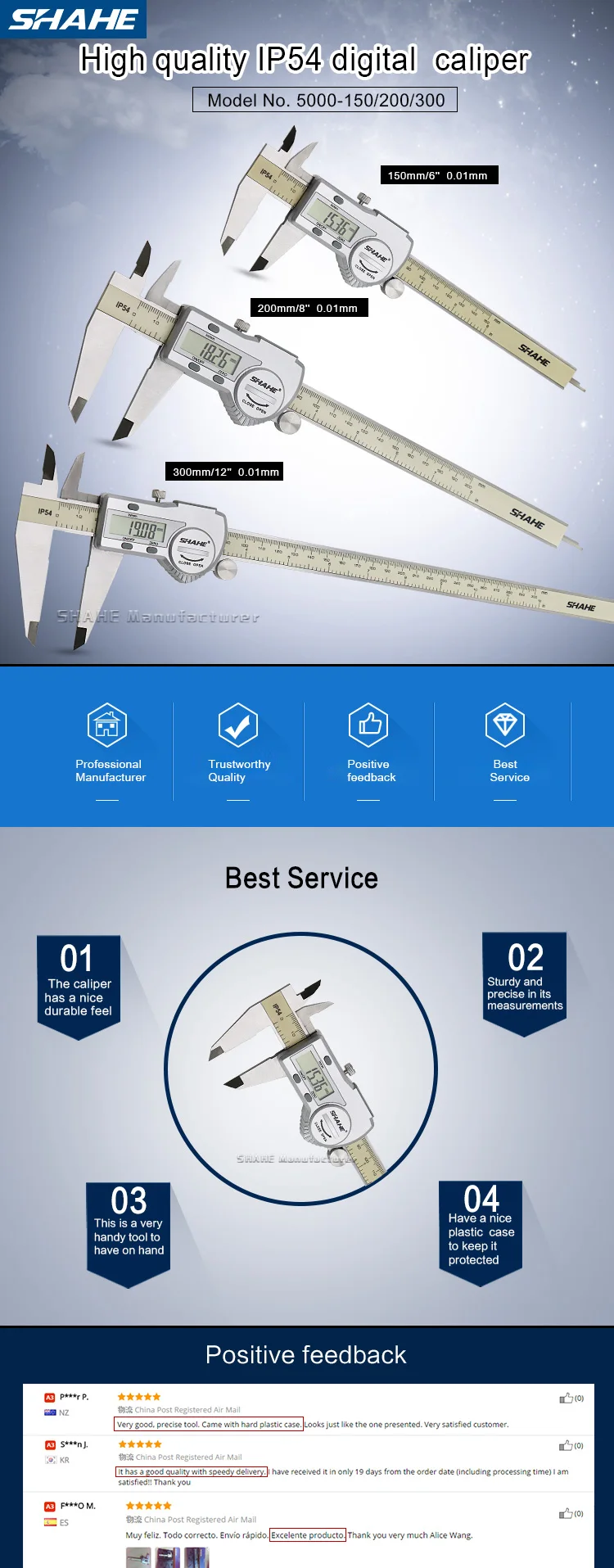Штангенциркуль цифровой SHAHE, 0-150 мм6 дюймов, из нержавеющей стали