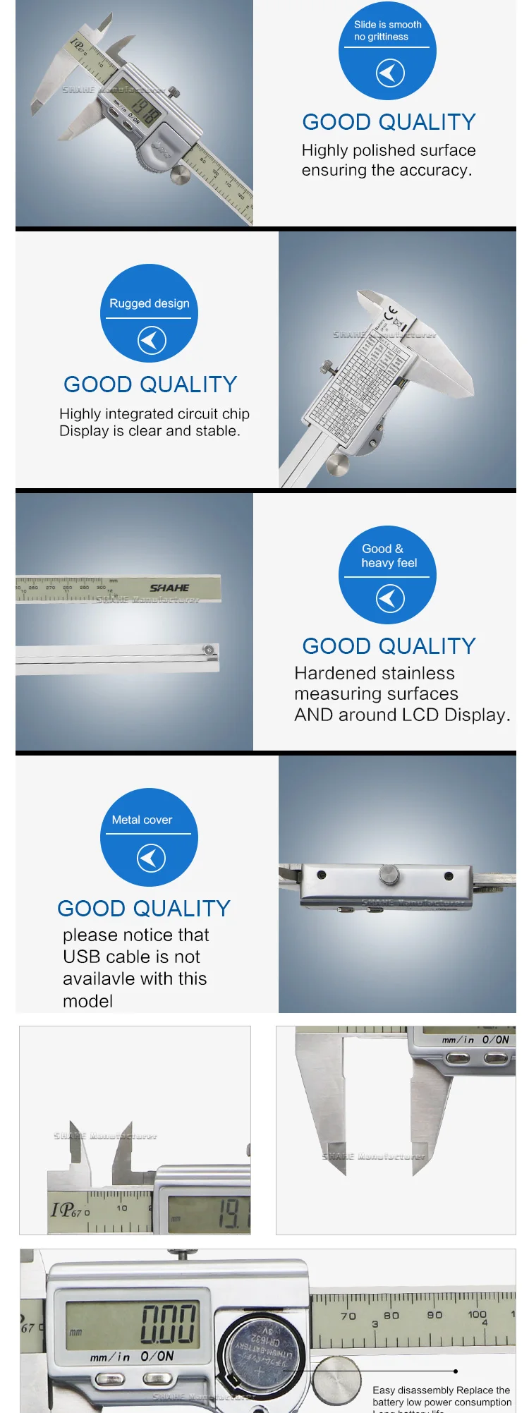 ★Особенности1. Водонепроницаемый IP67, закаленная нержавеющая сталь основная шкала/Измерительные челюсти2. Ролик тонкой регулировки/накатанный запорный винт для более удобного измерения и чтения3. Относительный/абсолютный обмен измерений в любом положении4. Высококачественная стеклянная фиксированная сетка, стабильная, прочная и высокая точность5. Быстрый дисплей измеряемого значения на ЖК-экране, отсутствие ошибки в скорости6. Две функциональные кнопки с лезвием для измерения глубины7. С кнопкой включения-выключения, автоматическое выключение8. Нулевая Настройка в любом положении, конвертация измерительной системы мм/дюйма9. Измерение для ID, OD, глубины и измерения шага