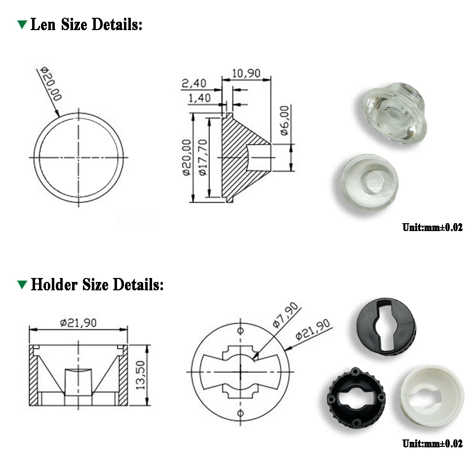SizeLens: Dia 20.00 x 10.90mm Holder: 21.9x13.50mm