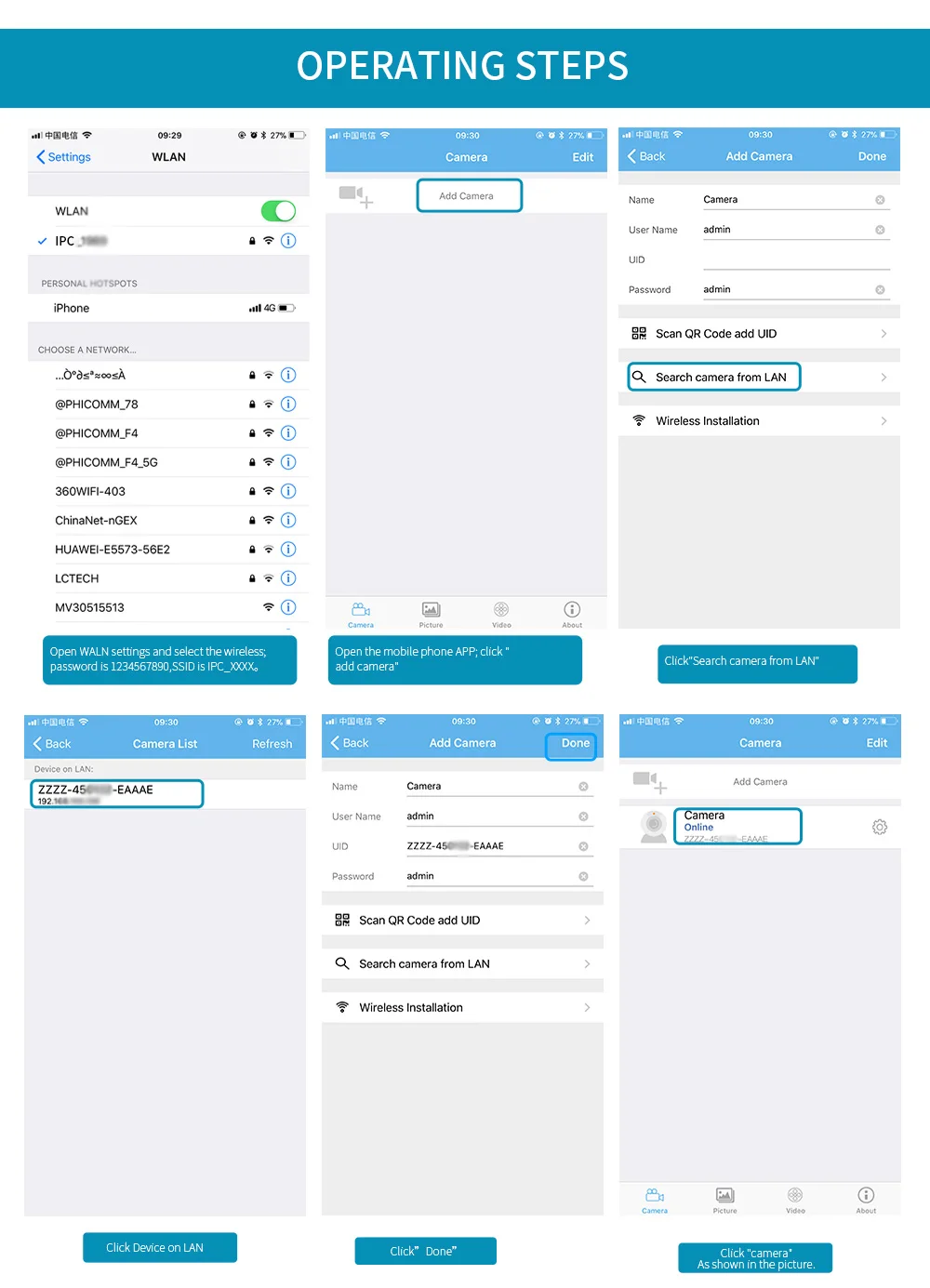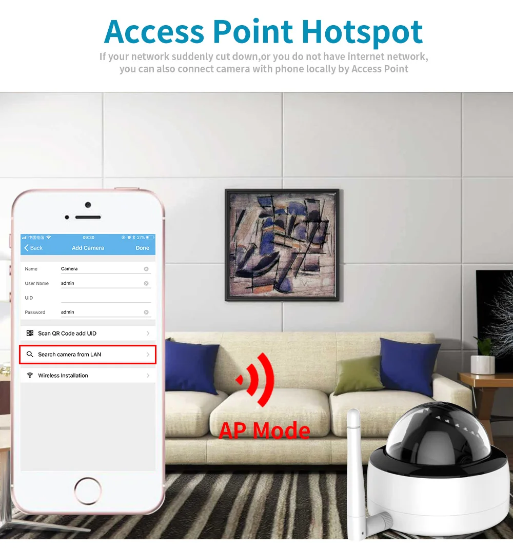 -Поддерживает мобильное видеонаблюдение (iOS, Android) через Camhi