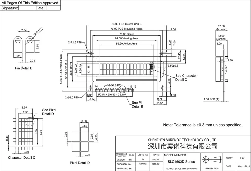 Размер печатной платы: 84*44 мм, 162, 1602, 16 х2