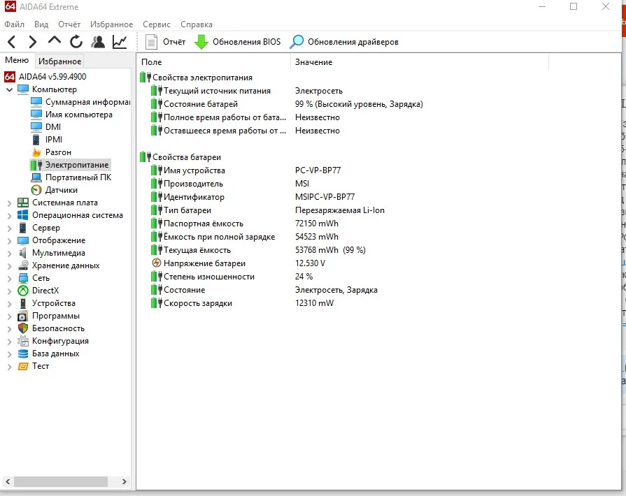 Заказал на 6600. Пришёл за 20 дней, заряженным на 67%. Встал как родной. После первой зарядки показания powercfg energy: Battery:Battery Information Battery ID MSI Corp. MS-16GH Manufacturer MSI Corp. Serial Number Chemistry LION Long Term 1 Design Capacity 73260 Last Full Charge 73260 Вторая зарядка: Last Full Charge 70418 Хватает на 5 часов офисной работы с внешним монитором. Гарантию дают 2 года. Надеюсь не понадобится.