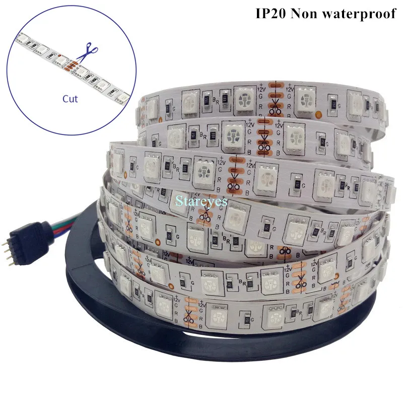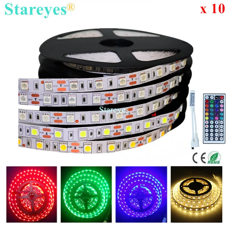 10 шт. SMD 5050 60 светодиодный одовм RGB светодиодный ная лента 5 м 300 светодиодный 12 В постоянного тока неводонепроницаесветильник та для вспышки Светодиодная лента освещение