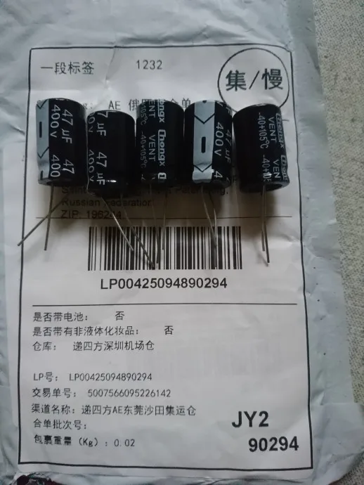 Заказывал такие конденсаторы раз пять или шесть, начиная с июля. При всех заказах происходила ошибка при постановке на хранение и посылки возвращались продавцам. Но вот наконец-то я получил долгожданную посылку. Отправка и доставка были быстрые. Большое спасибо продавцу!!!