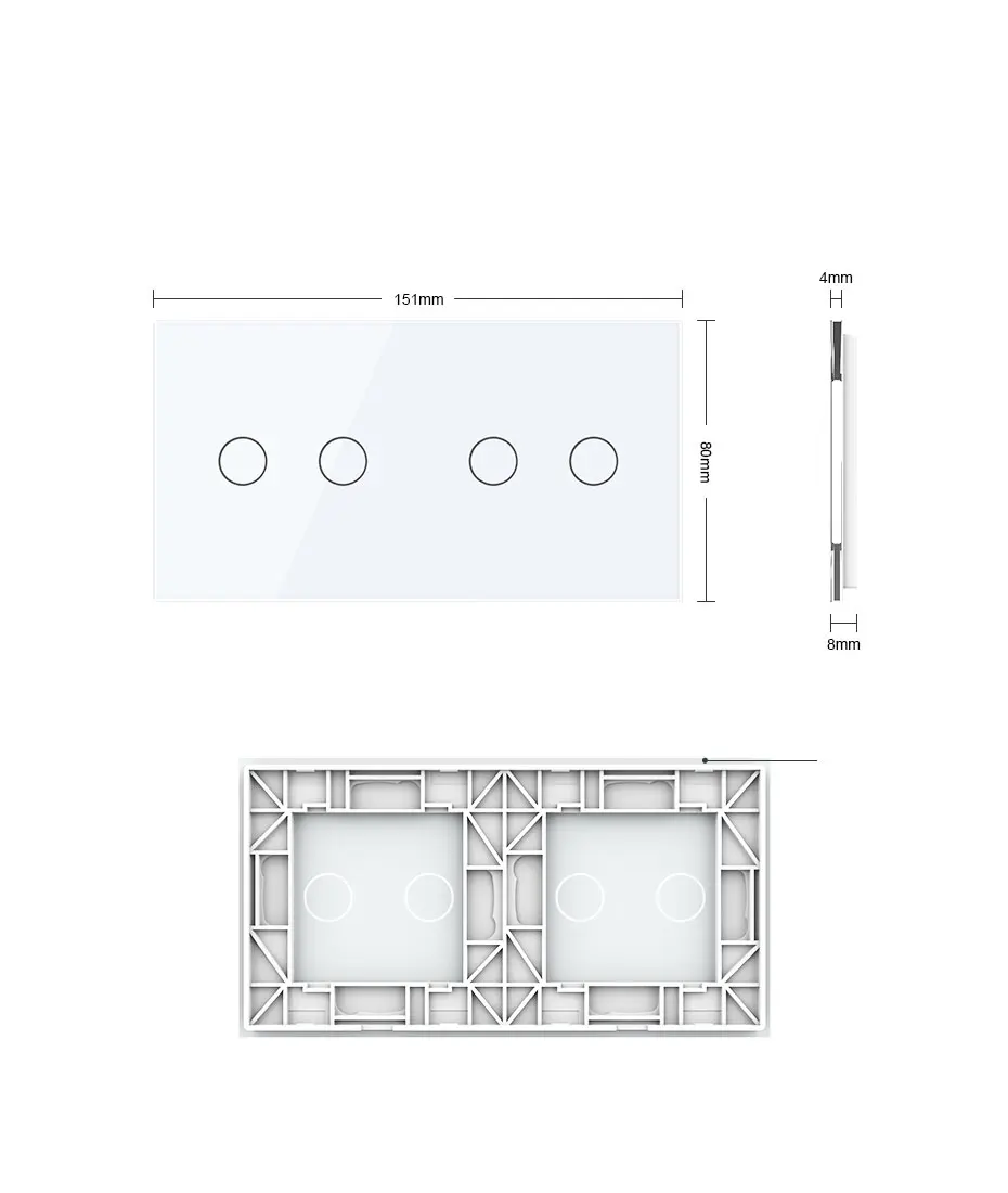 Хрустальное стекло Livolo 151 мм х 80 мм, 4 цвета, двойная стеклянная панель C7-C2C2-11 (4 цвета), с логотипомбез логотипа